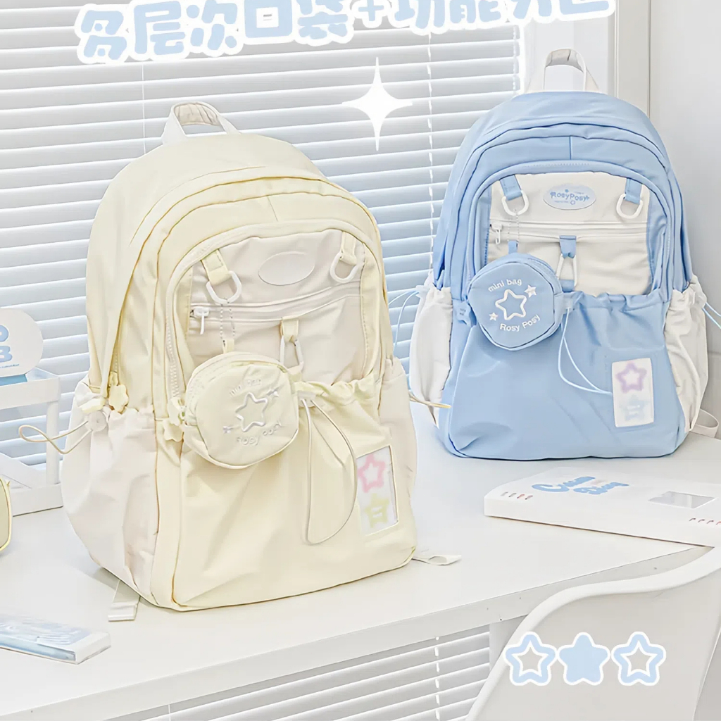 【Kirim Tas Gantung】Tas Sekolah Ins Wanita Besar Korea Import Serut Siswa Perempuan Volume Tinggi Tas Ransel Untuk Sekola