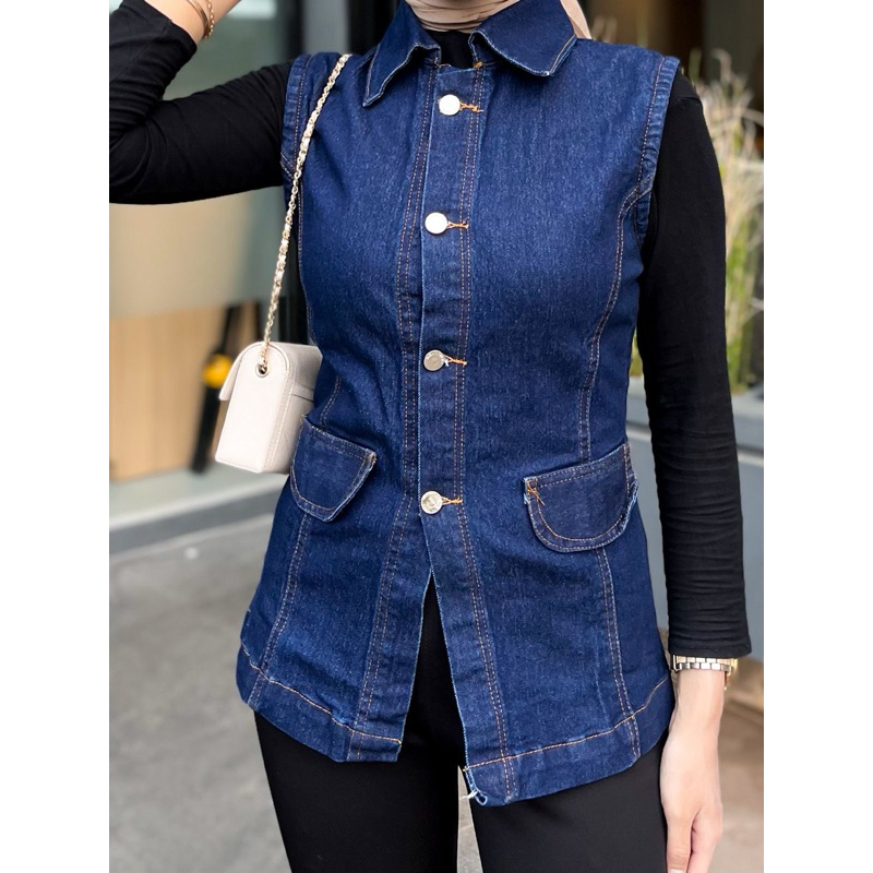[Mall] LIKA VEST JEANS BY KEENOHEL | VEST KEKINIAN | KOREAN STYLE | ROMPI JEANS | VEST WANITA PREMIUM | VEST ROMPI | JAKET ROMP
