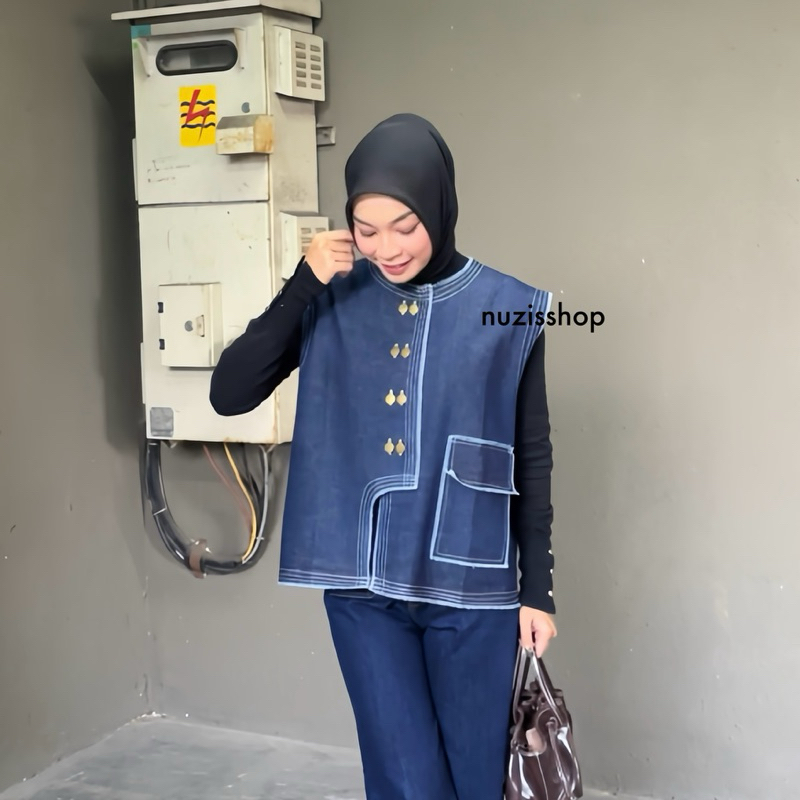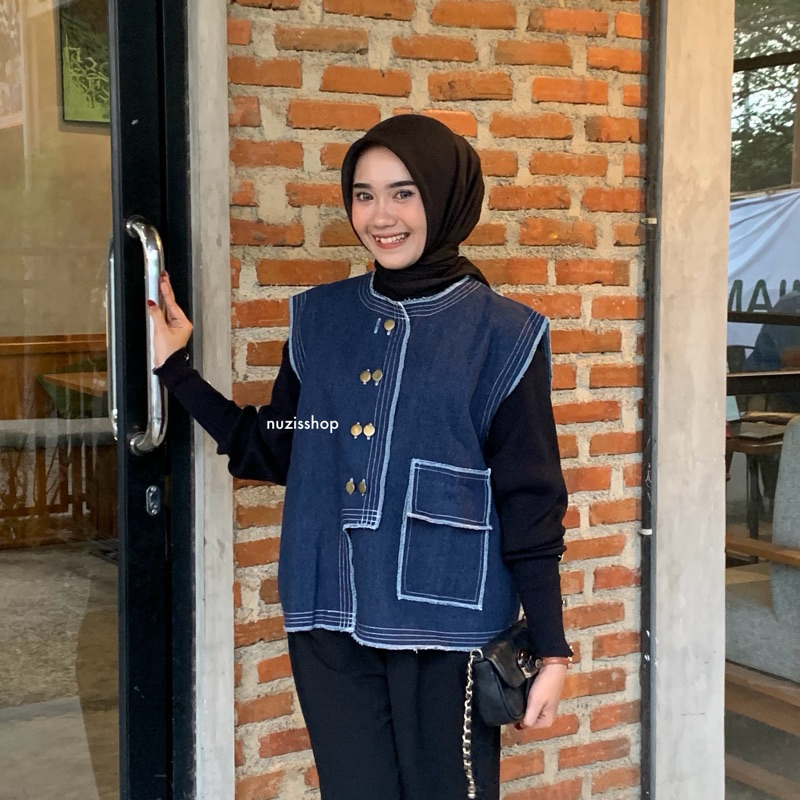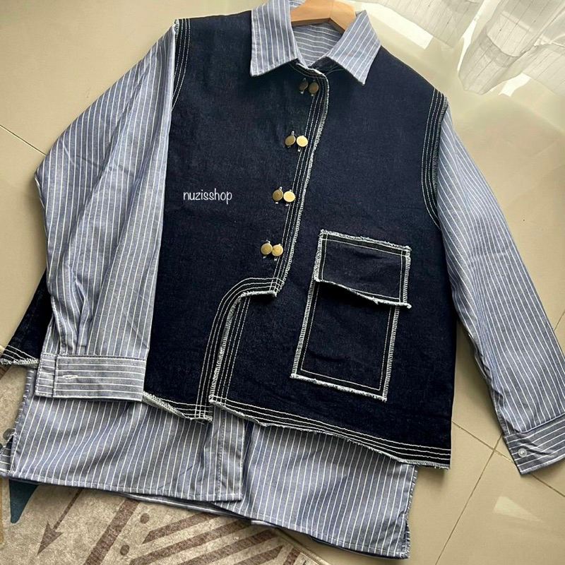 [Mall] NUZI - HAEIN VEST JEANS PREMIUM SET KEMEJA WANITA OVERSIZED WOMAN KOREAN STYLE OVERSIZED