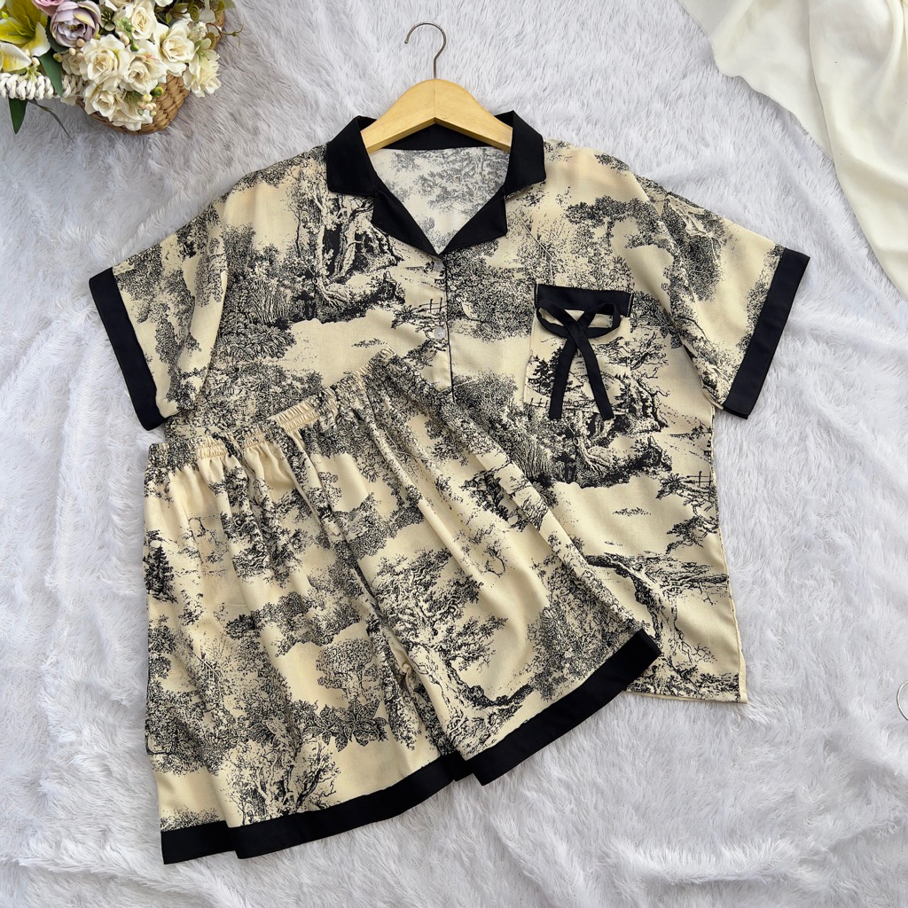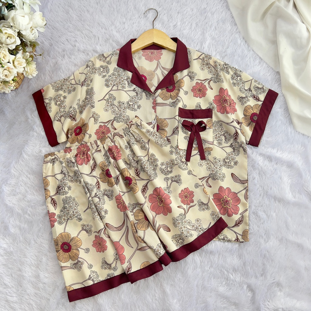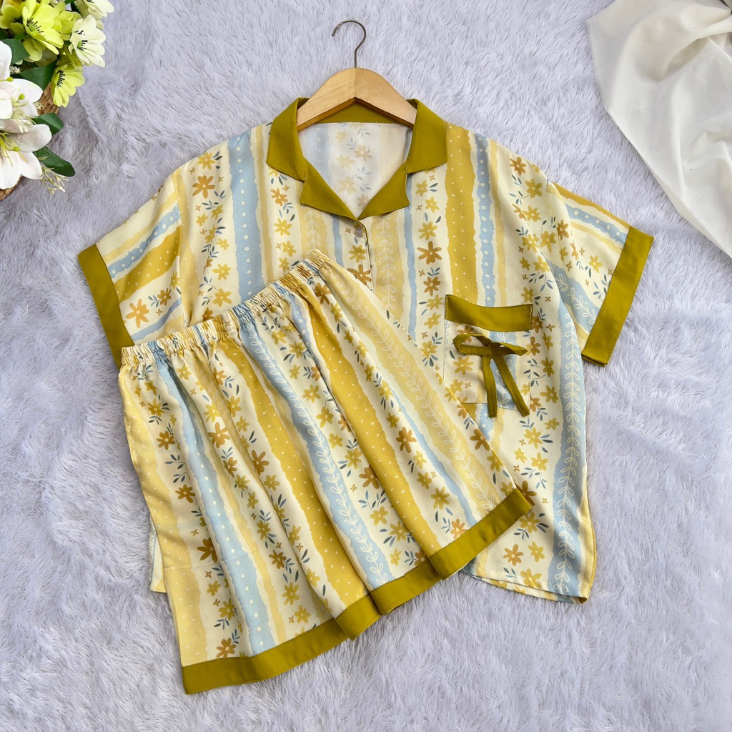PIYAMA LISA ONE SET BAJU TIDUR WANITA CELANA PENDEK LD 120