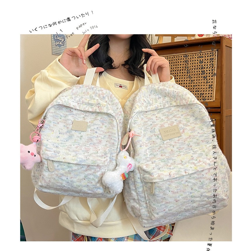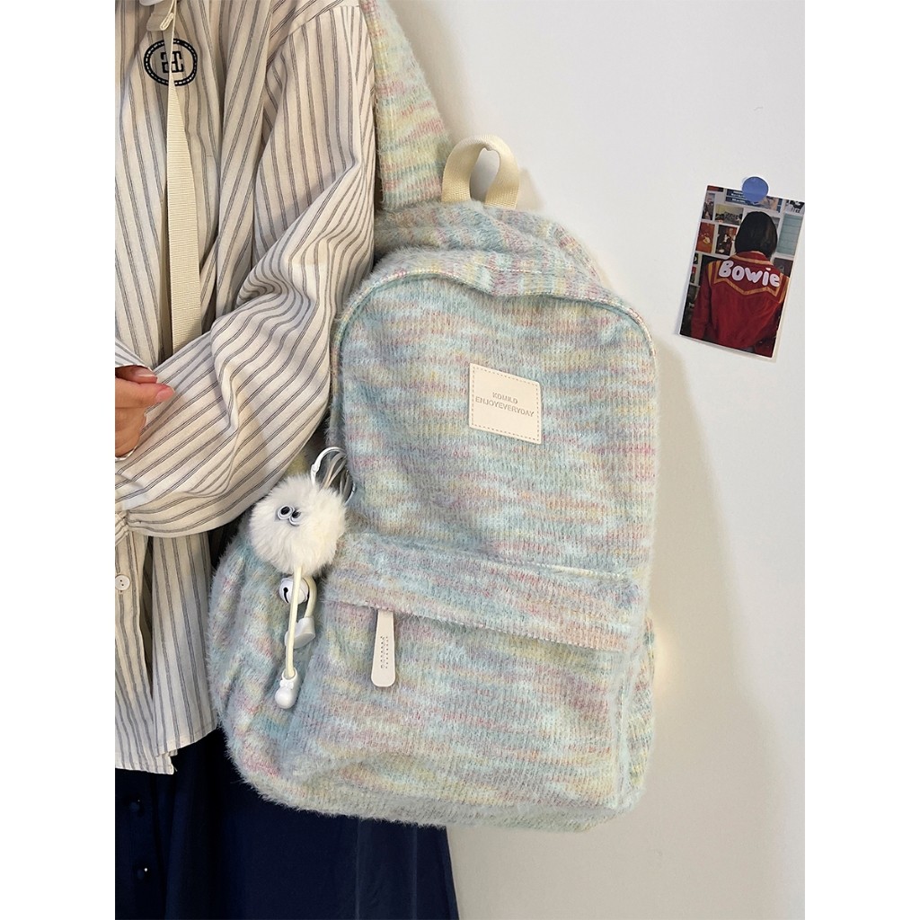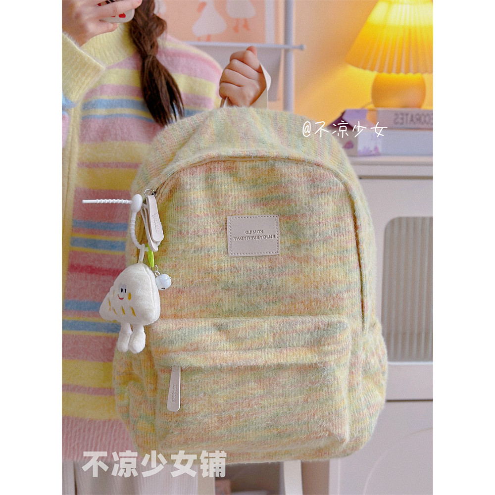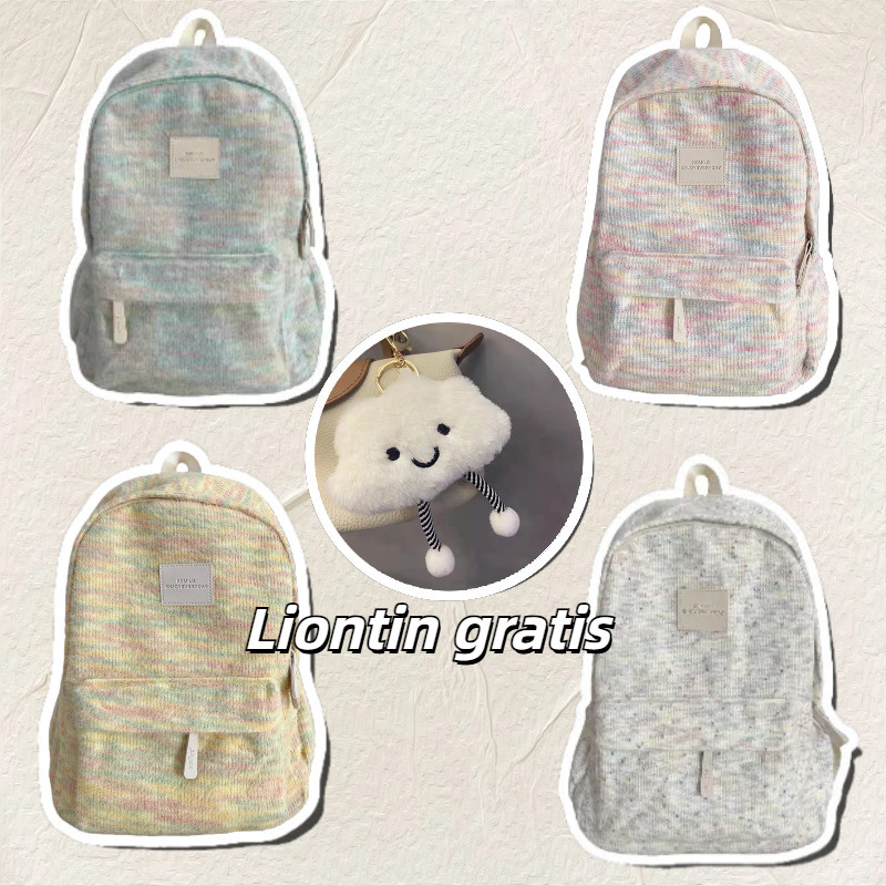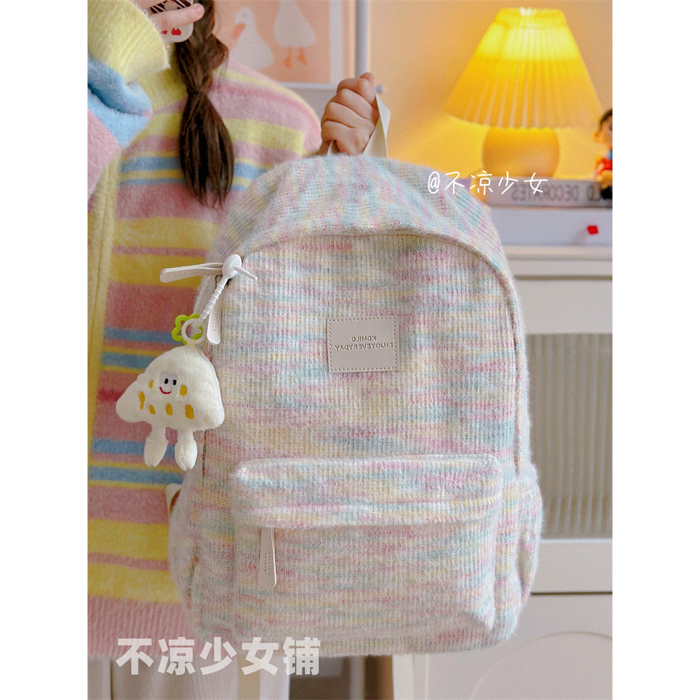 【Liontin Gratis】Tas Sekolah Y2K Jepang Tas Ransel Wanita / Lucu Ransel Laptop Multifungsi Siswa/ Pelangi Mewah Rajutan B