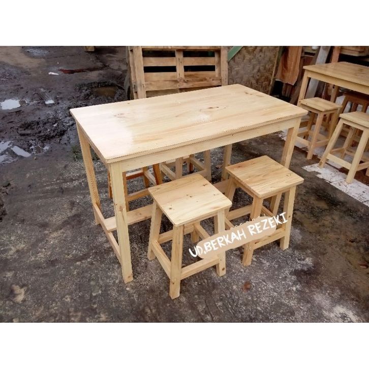 1 set meja makan 1 meja+4 bangku, meja makan cafe atau resto meja makan warung kayu jati belanda