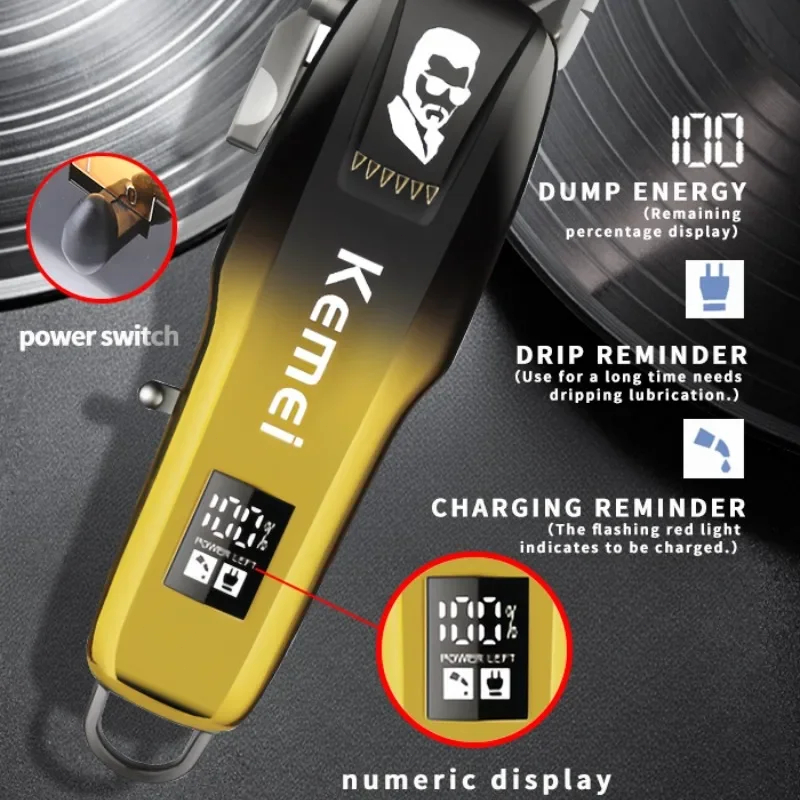 Alat Cukur Rambut Elektrik / Mesin Pemotong Rambut KM-709A Dengan Tampilan Digital LED Pencukur Kumis Jenggot Professio