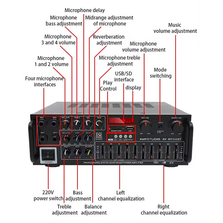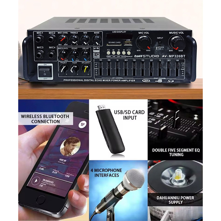 Amplifier 2000W Bluetooth Karaoke Home Theater Mp3 USB FM Radio