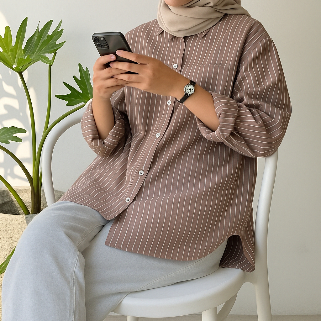 FUKUTANI KEMEJA SALUR OVERSIZE WANITA KATUN MIX