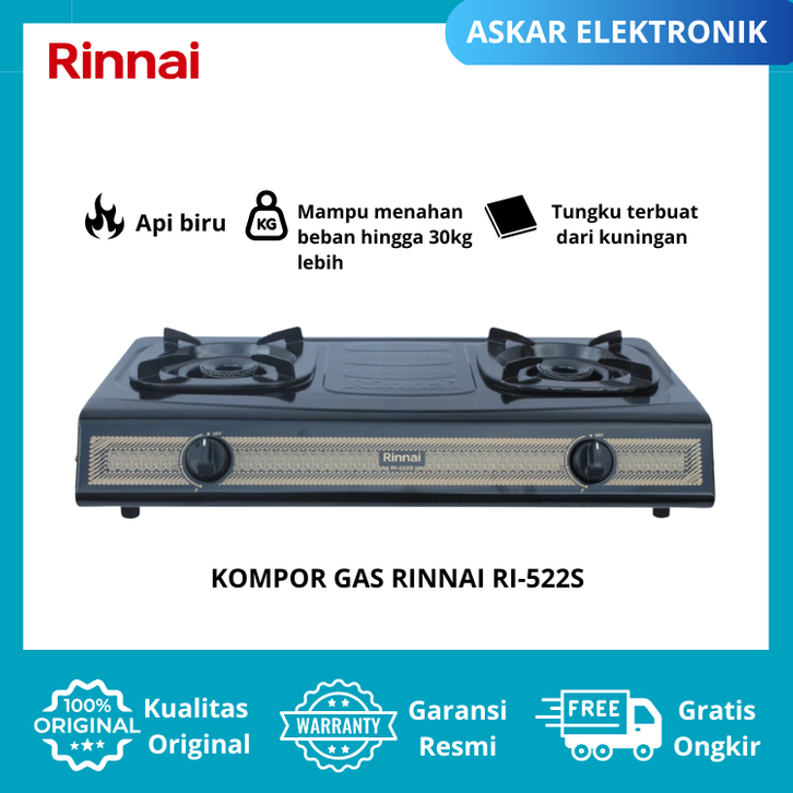 KOMPOR GAS RINNAI 2 TUNGKU RI-522E TURBO STAINLESS STEEL TERBARU MURAH GARANSI RESMI