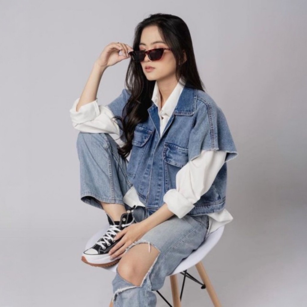 [Mall] ALOHA BELLE CARGO VEST JEANS OVERSIZED PREMIUM ROMPI JEANS WANITA OUTER WANITA VJN214