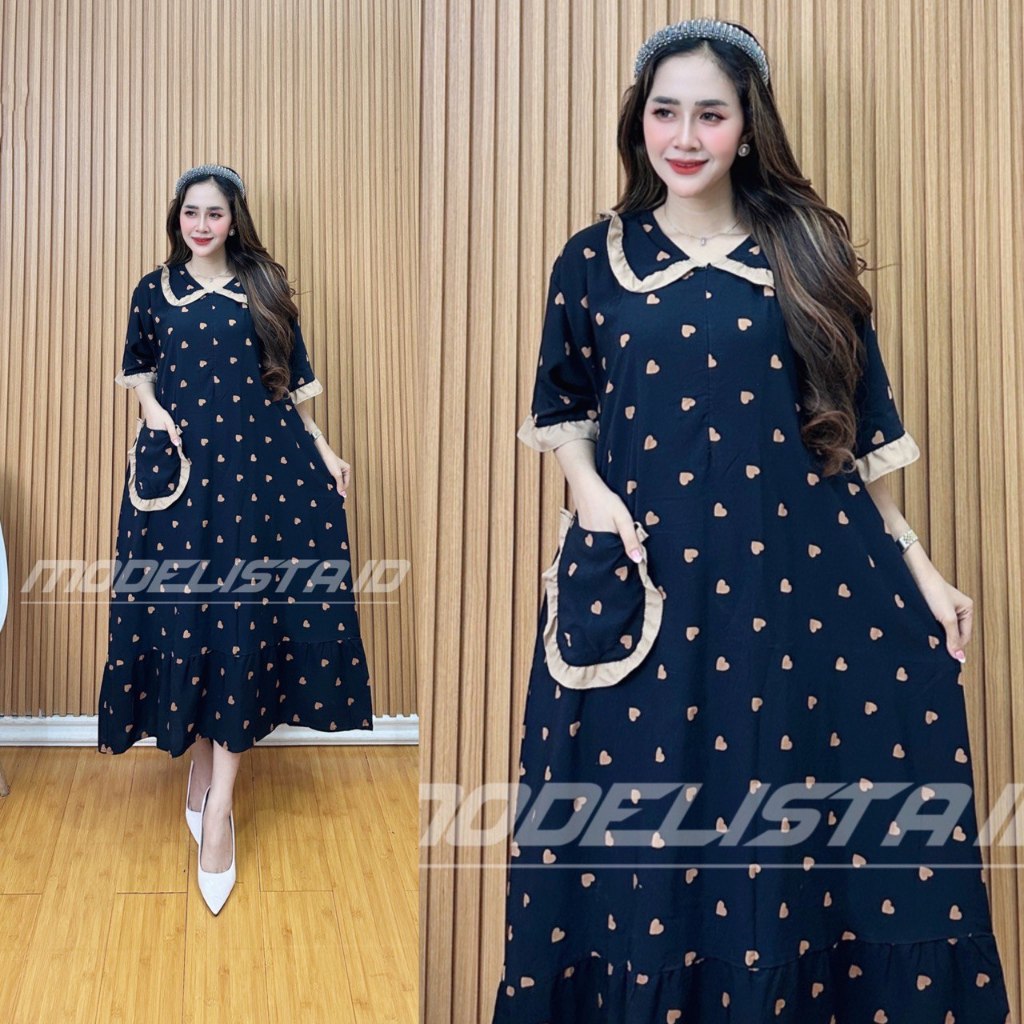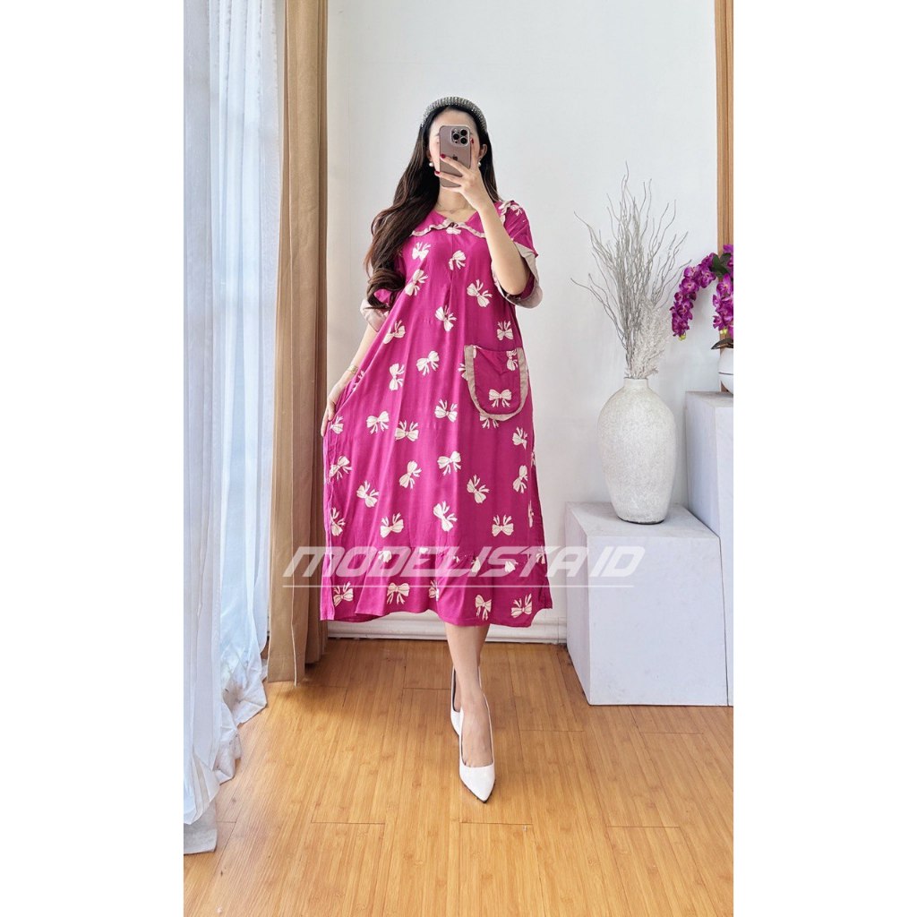 YURA DRESS KERAH SAKU DEPAN BAHAN RAYON RESLETING DEPAN BUSUI FRIENDLY
