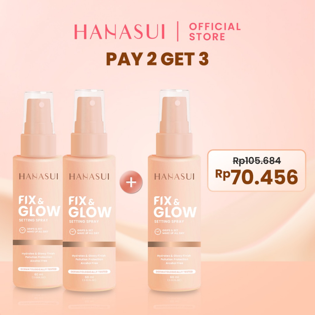 Hanasui Fix & Glow Setting Spray - Hydrating Setting Spray Glowy Finish Make Up Menghidrasi Kulit MaskProof Tahan Lama