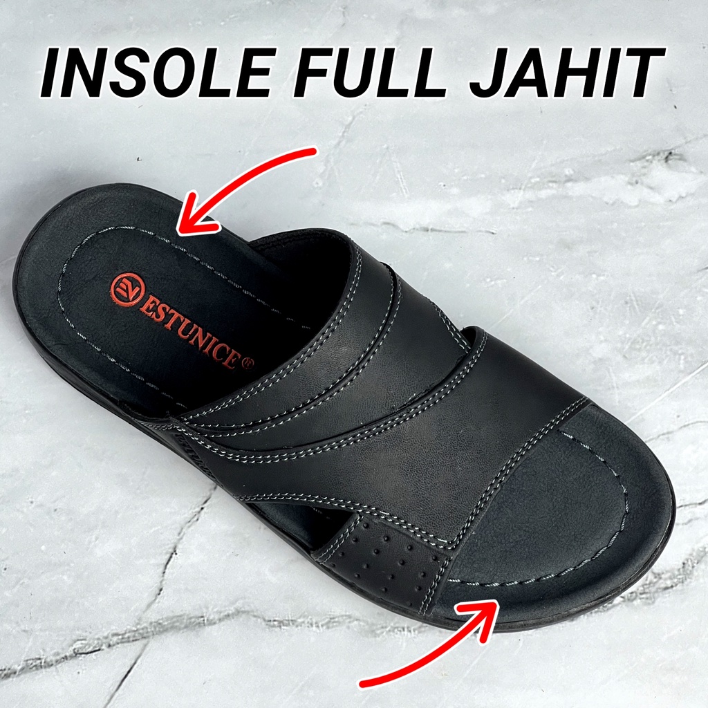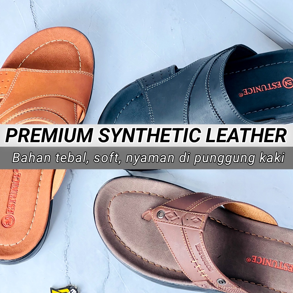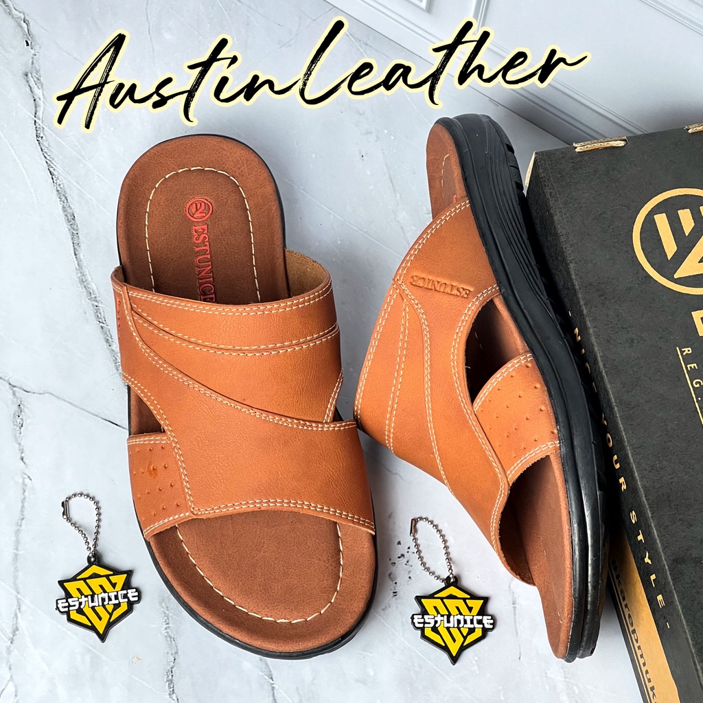 Estunice Sandal Pria Kulit Sendal Slop Selop Slip On Slide Pria - Hylos Slop Coklat