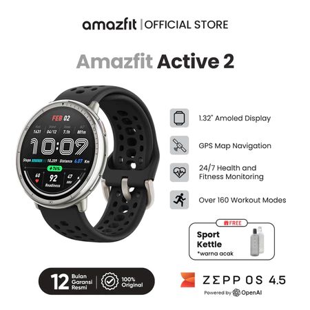 Amazfit Official Active 2 Smartwatch | 5 ATM Tahan Air | 160+ Mode Olahraga | GPS Bawaan | Notifikasi WhatsApp