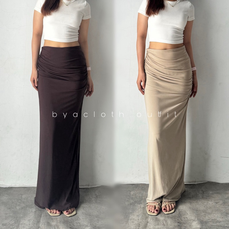 KIYO SKIRT - KOREAN SKIRT ROK WANITA ANTI KUSUT POLYESTER - ROK KERUT WANITA - ROK BASIC POLOS - MAXI SKIRT ROK PANJANG WANITA
