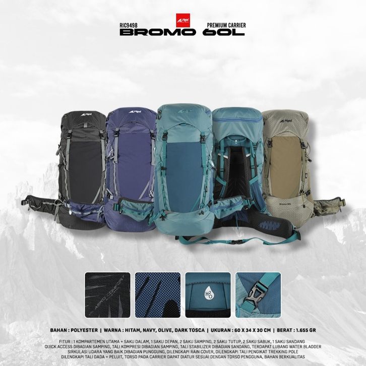 Tas Gunung / Carrier Premium Bromo 60 Liter Arei Outdoorgear