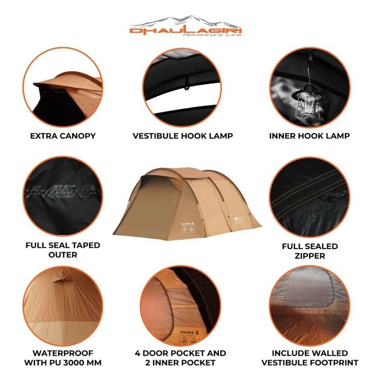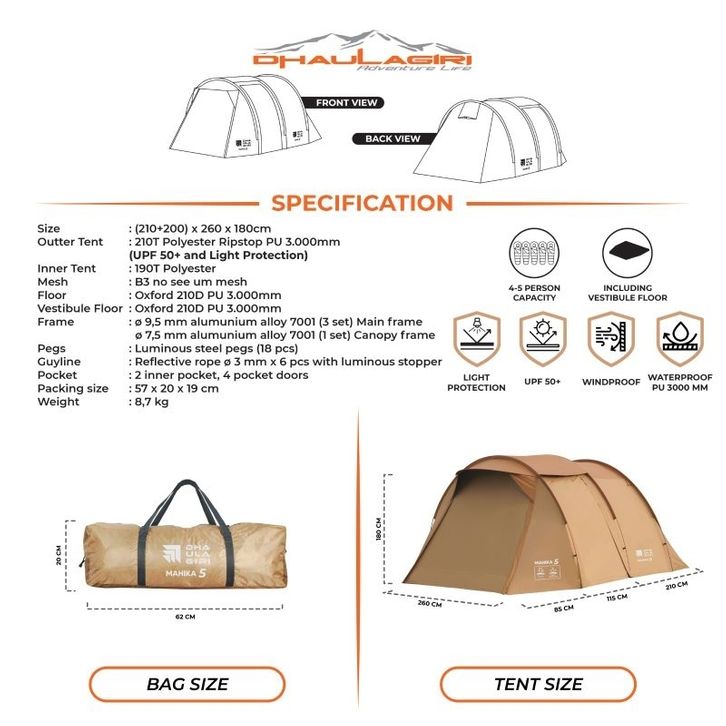 Tenda Camping Dhaulagiri Mahika 5 Khakist Light Protection - Tenda Kapasitas 5 Orang