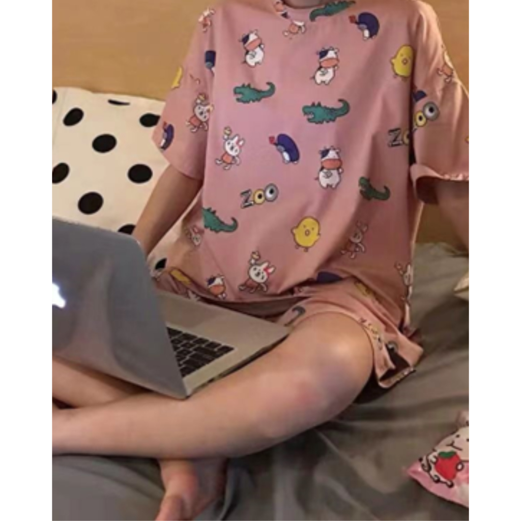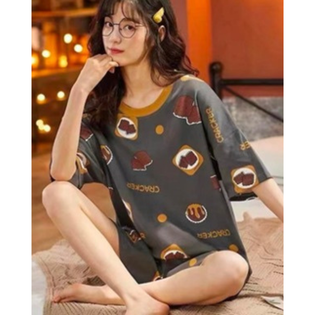 OPT P4 [FREE ONGKIR] PIYAMA SET BAJU TIDUR KAOS WANITA LENGAN CELANA PENDEK POLYESTER SPANDEK