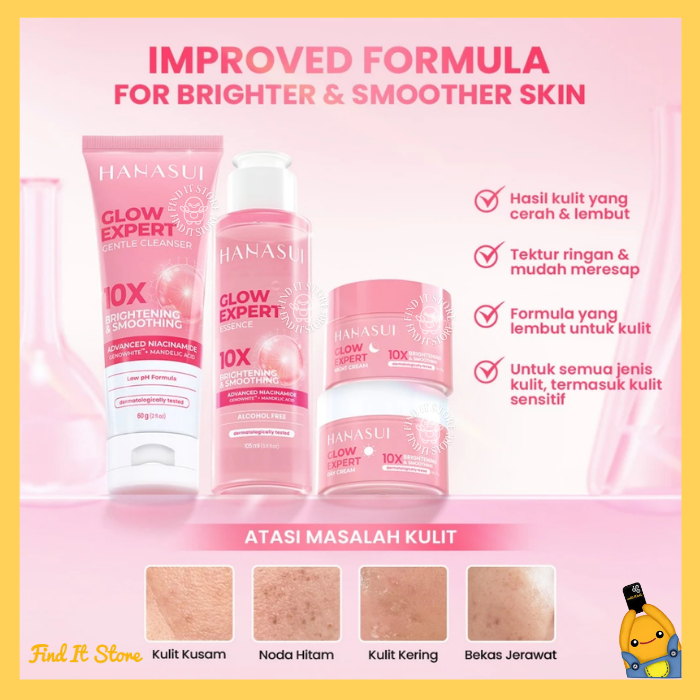 Hanasui Kemasan Baru Mencerahkan Double Expert, Real 10 PERSEN Advance Nianicinamide Menyamarkan Bintik Hitam Bekas Jerawat New Improved Formula