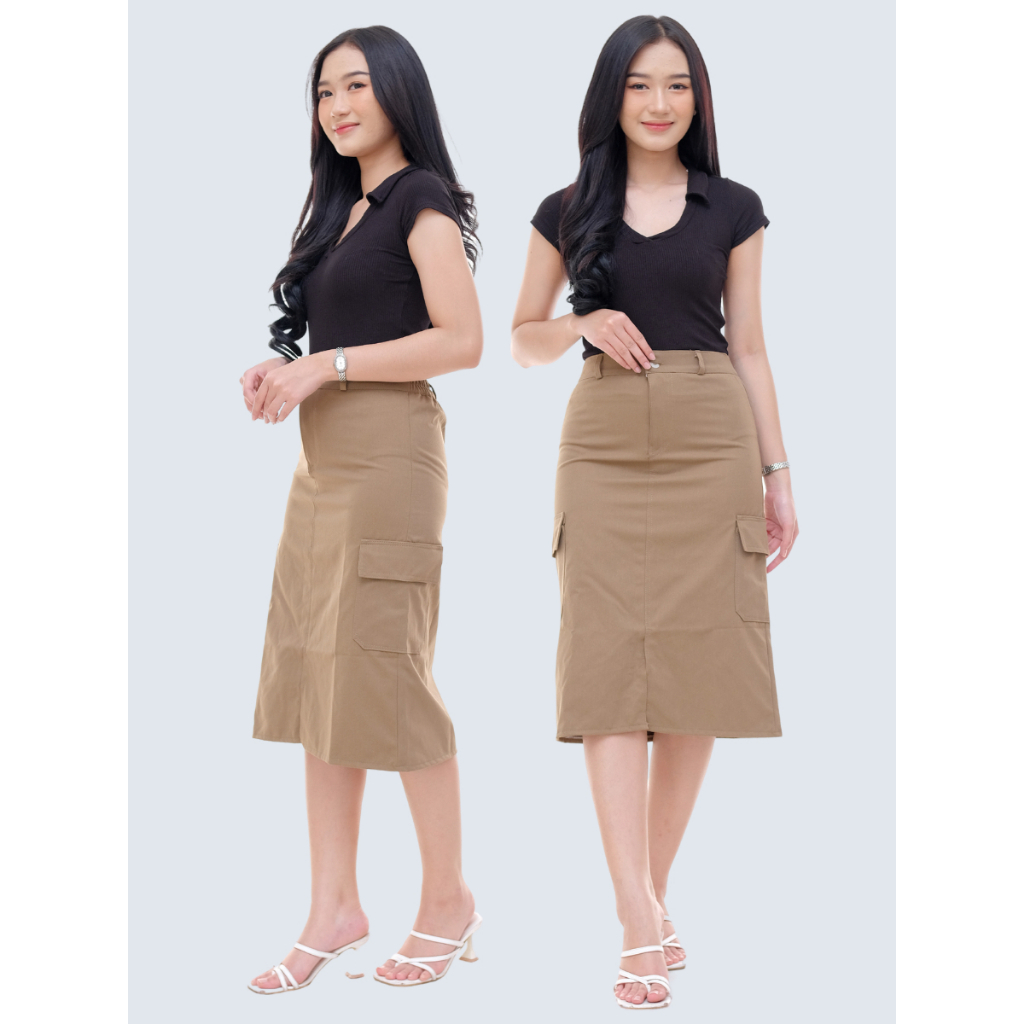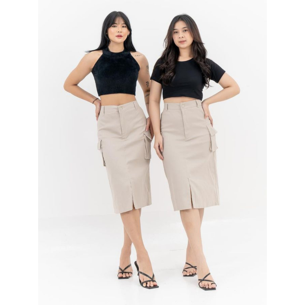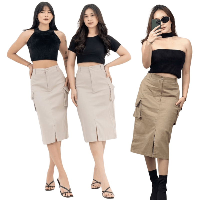 ROK KARGO MIDI / CASSA SKIRT CARGO HIGHWAIST 7/8 KOREAN STYLE