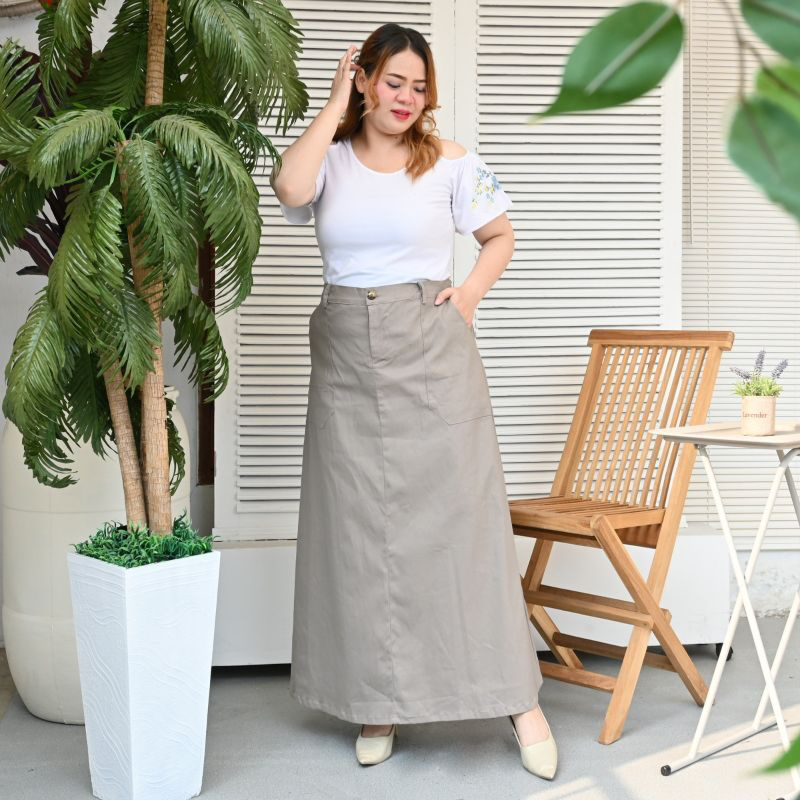 ROK PANJANG RITSLETING JUMBO 209310 / ROK BIG SIZE / ROK BUAT BB 100 KG / ROK MUSLIMAH / ROK A LINE / ROK KATUN TWILL STRETCH / LONG SKIRT SOOYA