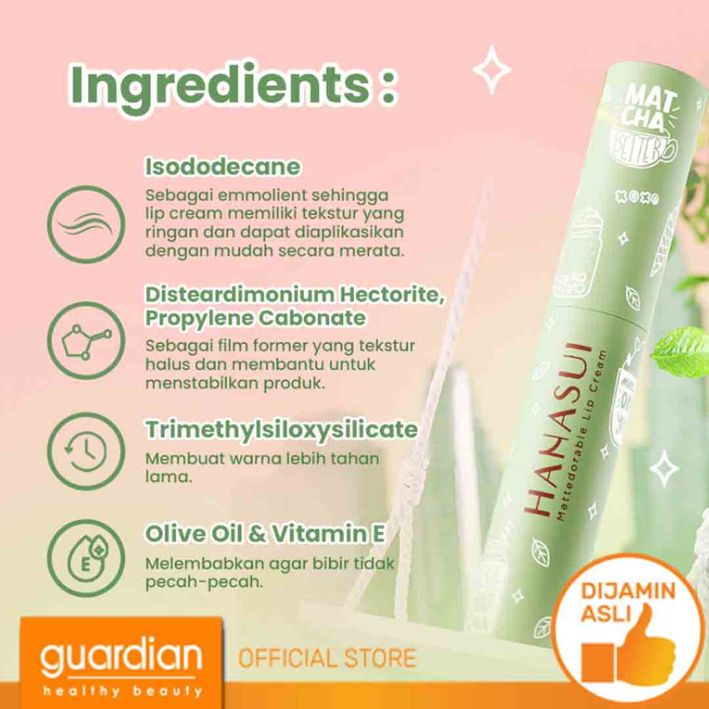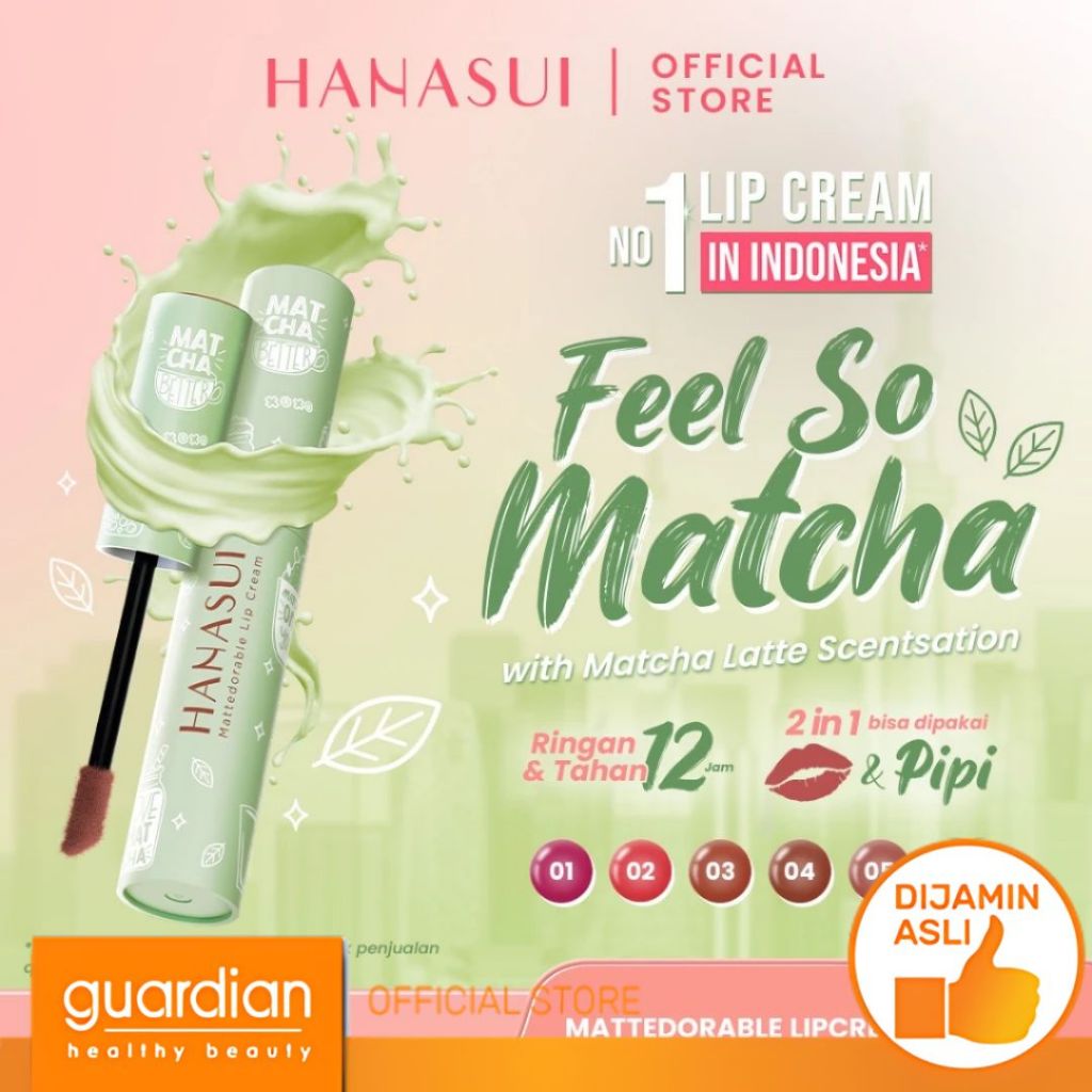 Liquid Lipstick Hanasui Mattedorable Lip Cream Matcha Latte Edition 4gr