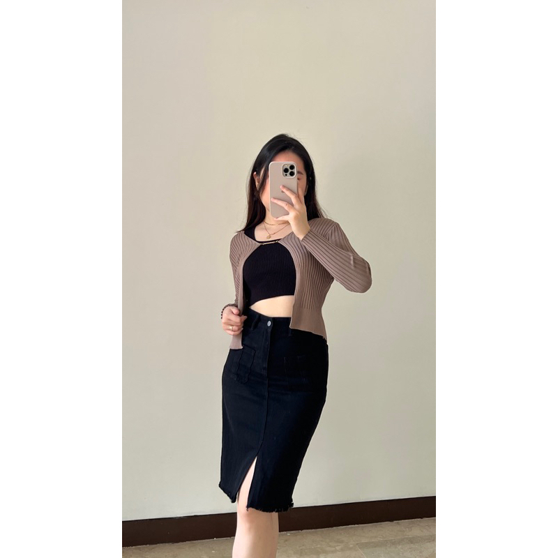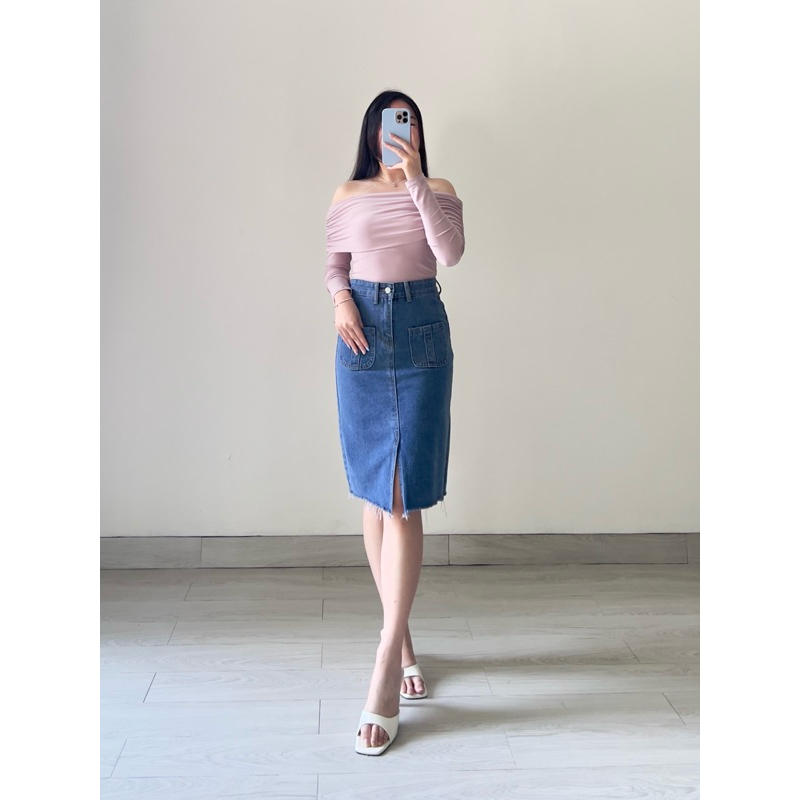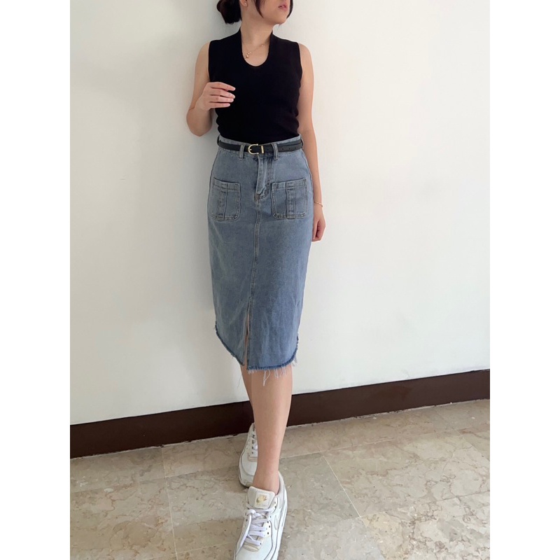 KLAVEE - FREYA DENIM SKIRT / ROK DENIM JEANS WANITA / MIDI KOREAN STYLE SKIRT