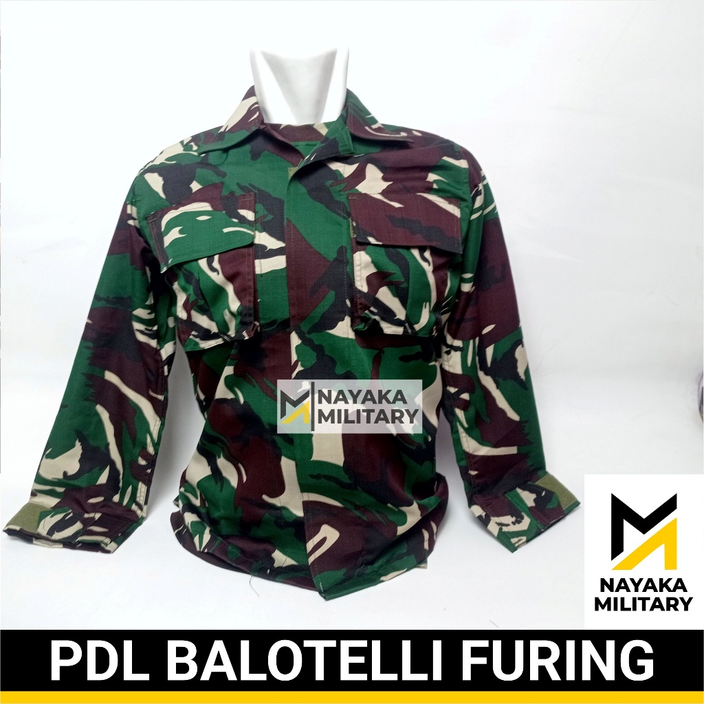 Baju PDL Balotelli Furing Sleting Seragam Tentara Loreng TNI Malvinas Setelan Pakaian Lapangan Stelan Baloteli Puring Re