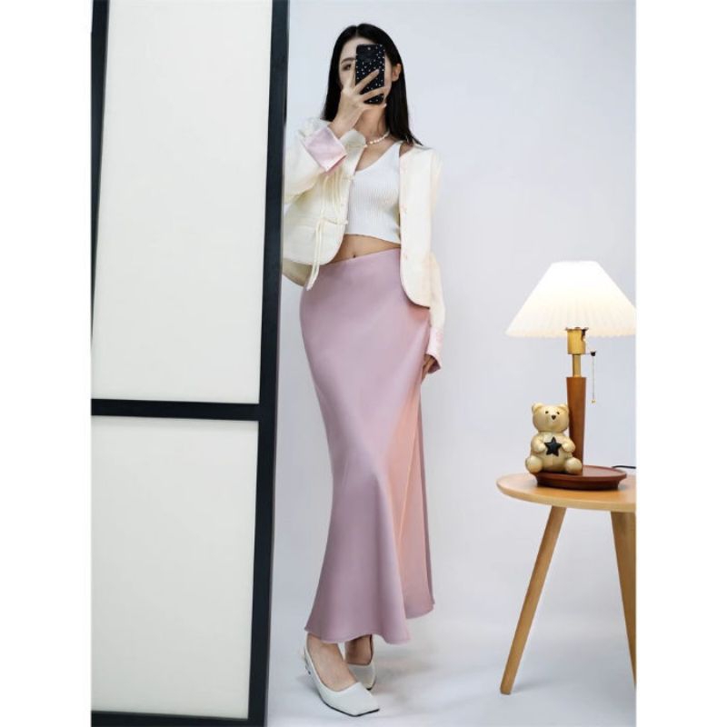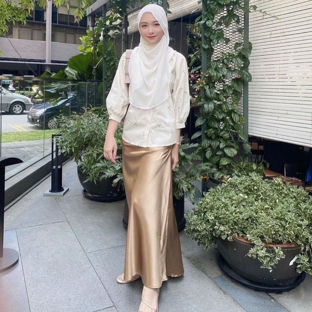ROK SATIN A LINE MAXI – HIGH WAIST PINGGANG KARET | TEBAL, TIDAK NERAWANG | ELEGAN HIJAB