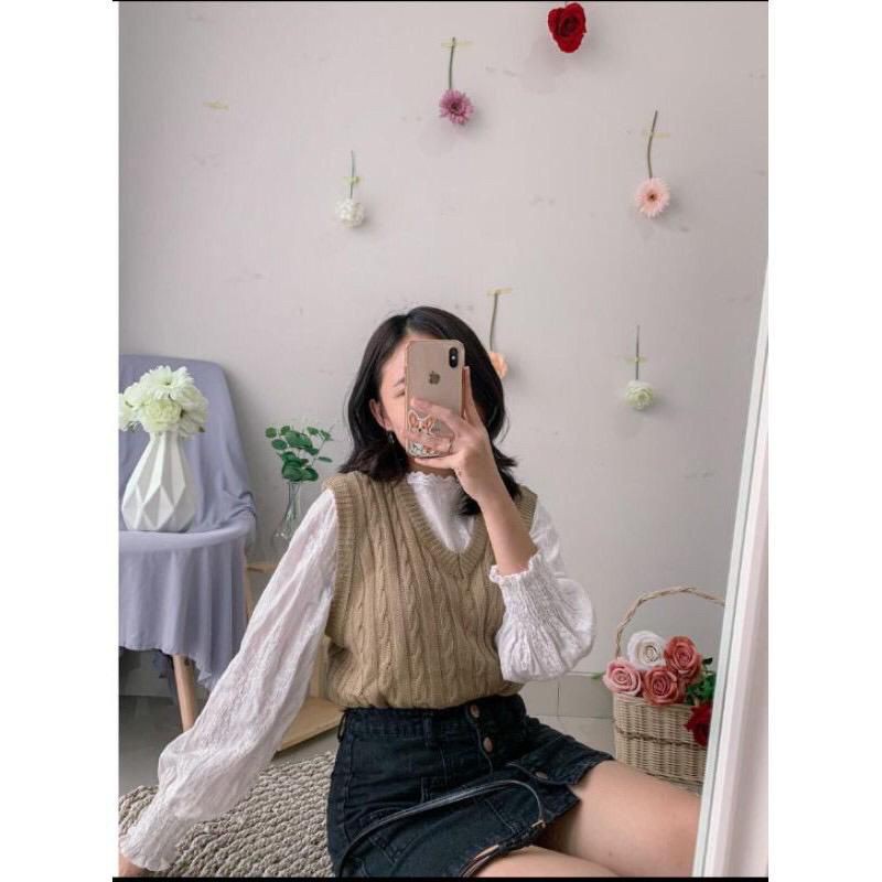 [Mall] RAJUT ROMPI CABLE / VEST KOREAN STYLE / ROMPI RAJUT WANITA / ATASAN WANITA KOREAN STYLE / ROMPI RAJUT KEPANG