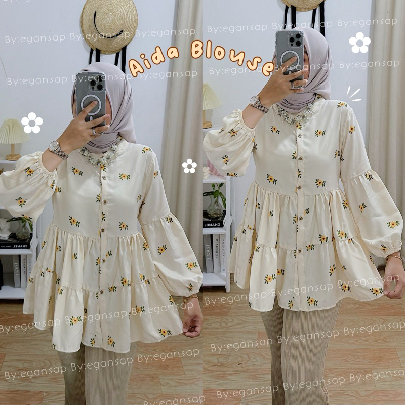 EGANSAP | AIDA BLOUSE BABYDOLL LD 98 | KEMEJA LENGAN BALON FLOWER BUNGA