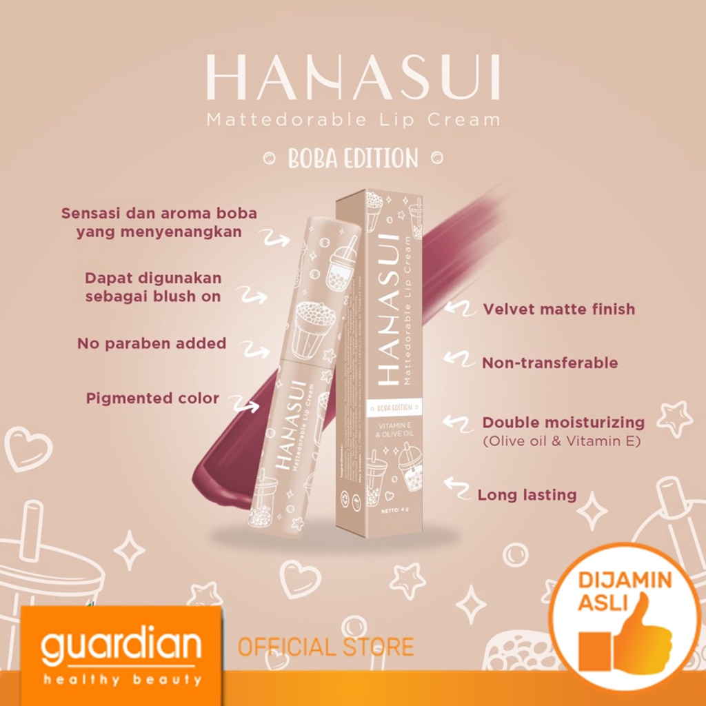 HANASUI Mattedorable Lip Cream Boba Edition - Velvet Matte Finish Pigmented Long Lasting Double Moisturizing