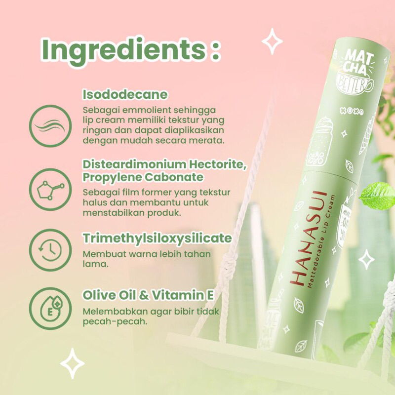 HANASUI Liquid Lipstick Mattedorable Lip Cream Matcha Latte Edition / Hanasui Matcha Lip Cream