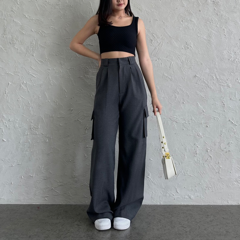 YEONA - ZIA CARGO PANTS WANITA SEMIWOOL S-XL