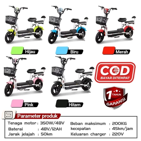 Sepeda Listrik dewasa Sepeda Motor Listrik Kapasitas angkut 200kg 48v 12ah Sepeda listrik Garansi 1 tahun