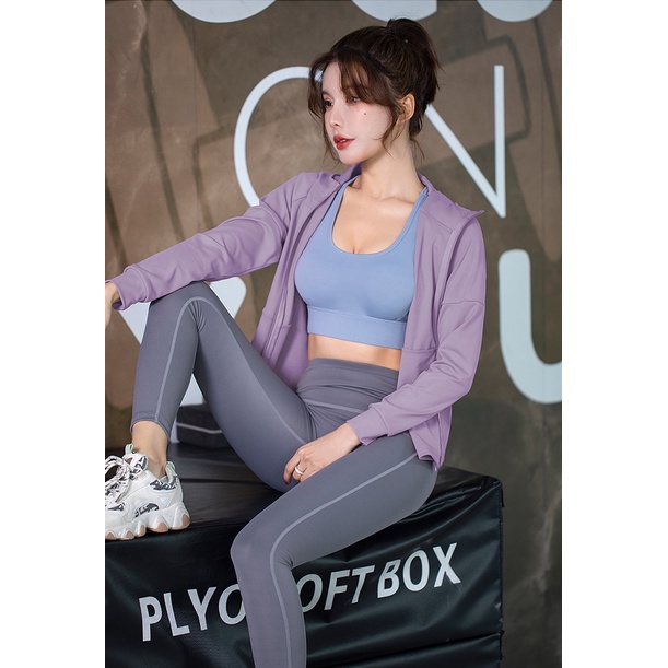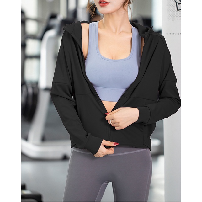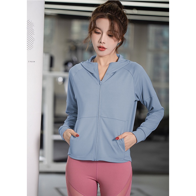 Baju Gym Jaket Olahraga Wanita UPF 50+/Anti UV Protection Crop Top Hoodie Korean Style Atasan Jaket Lari Jogging Running