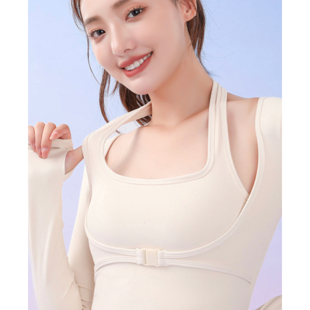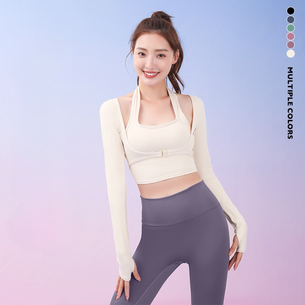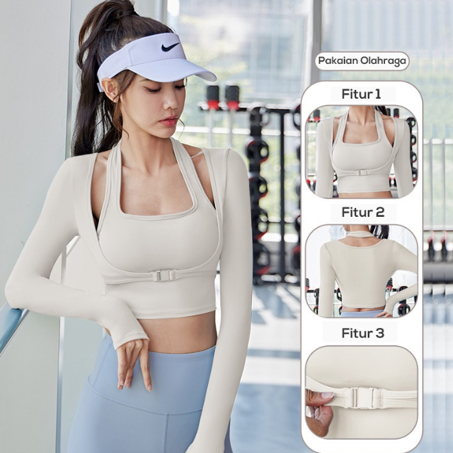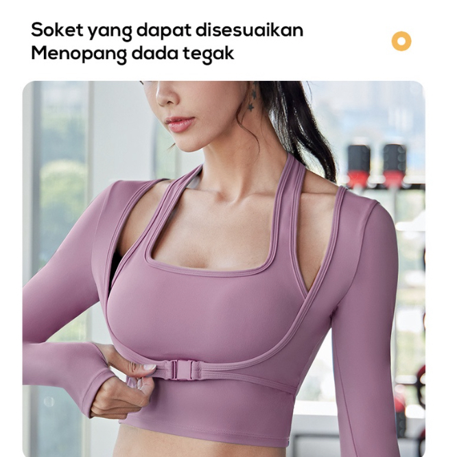 Atasan Baju Olahraga Wanita Lengan Panjang Baju Gym Sport Yoga / Pakaian Olahraga Wanita Dengan Cup Gym / Sport Bra Wani