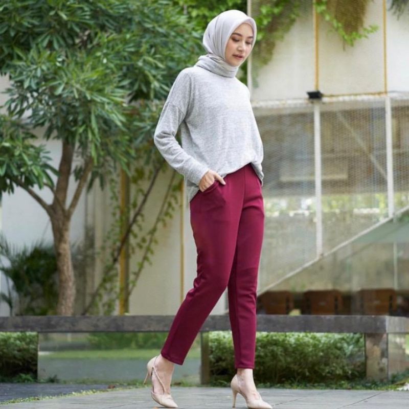 Celana Luna Basic Pant Cello Scuba Premium / Celana polos Pensil wanita / Celana basic momo pants kain scuba