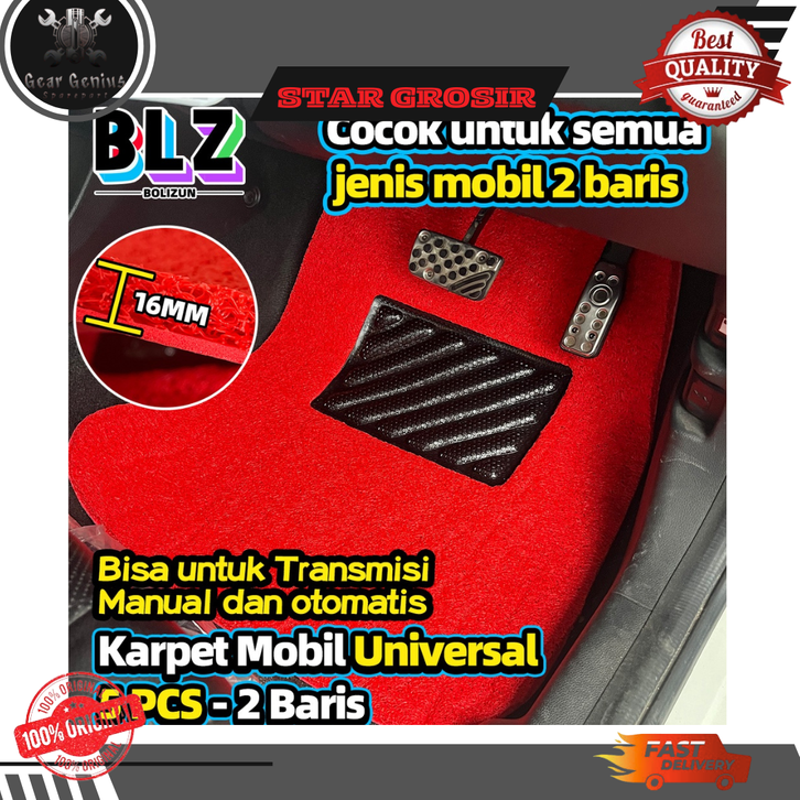 Karpet Mobil 5 Pcs 2 Baris Universal - Mie Bihun PVC - Ketebalan 16MM/ Universal bisa diaplikasikan ke semua mobil