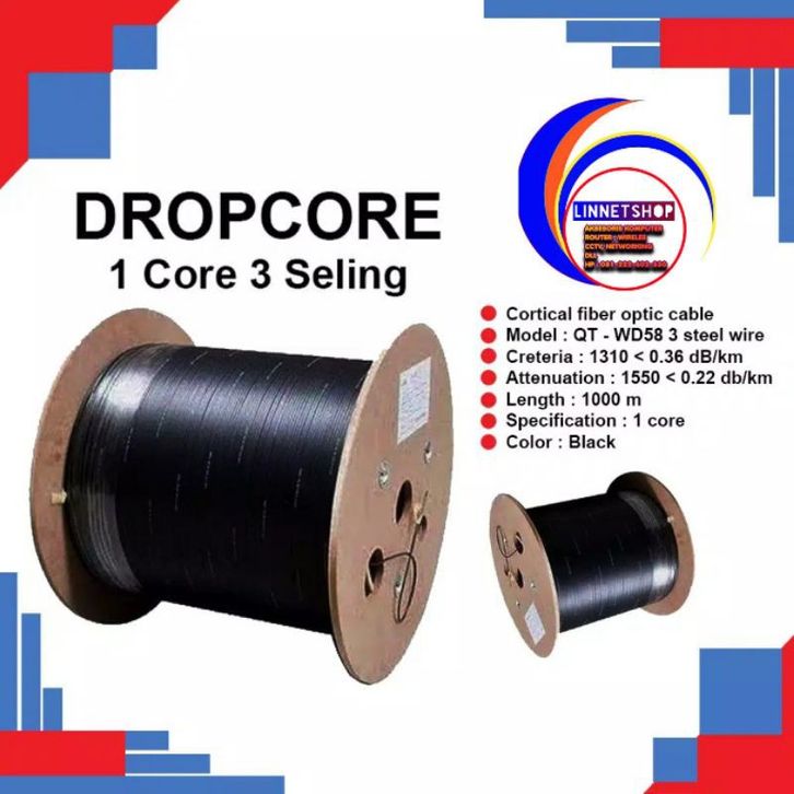 PROMO Kabel Fiber Optik 2 4 Core Global Kabel Dropcore Fiber Optik 1 Core 3 Seling Panjang 1KM 1000M 1 Roll Random