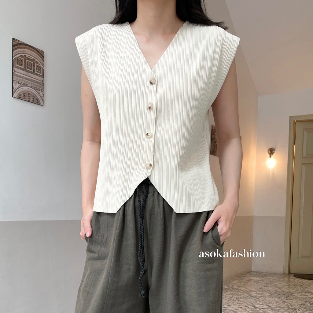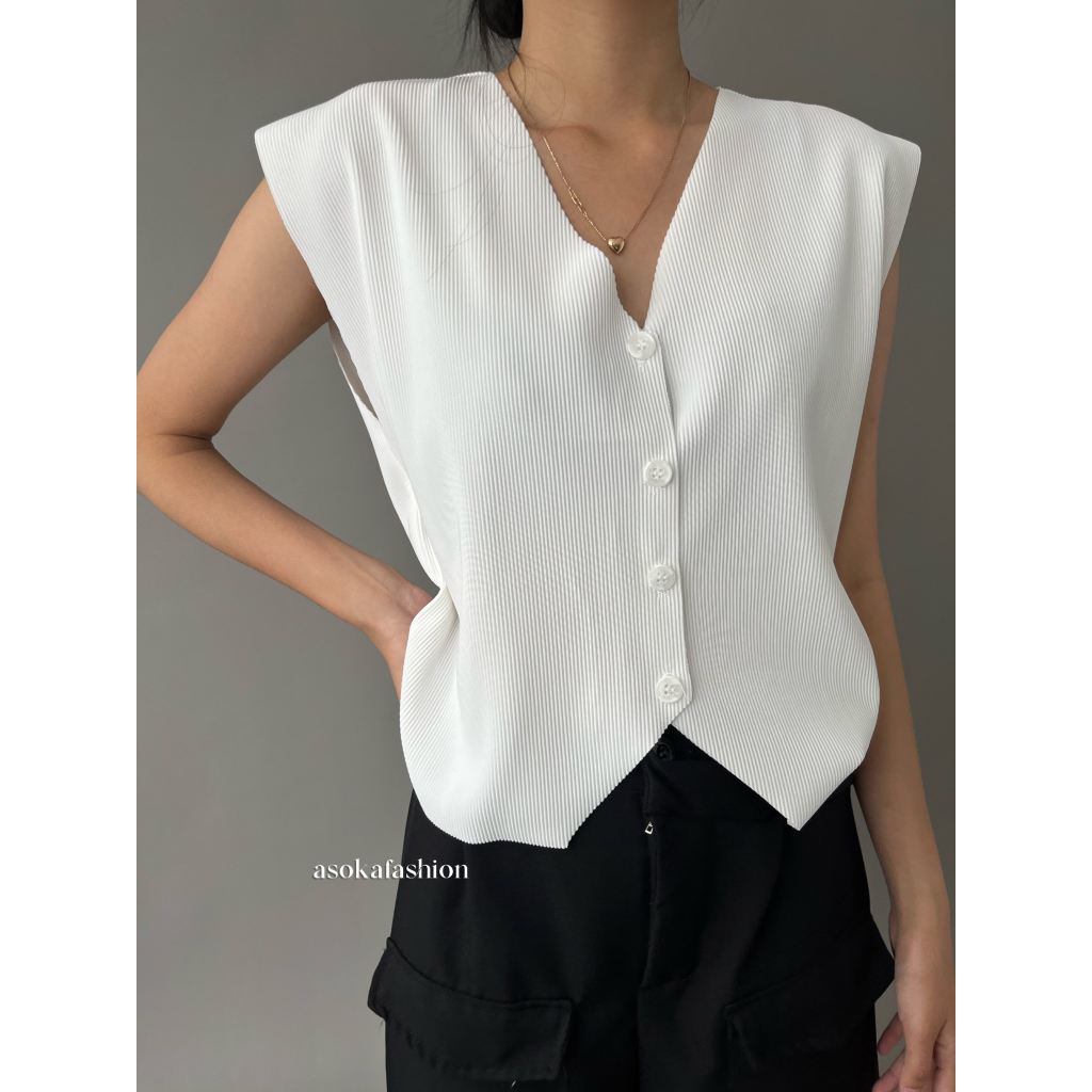 ASOKA SHEA T0P 2175 - VEST ROMPI WANITA UNFINISHED CUT - V NECK HALTER - SLEEVELESS T0P