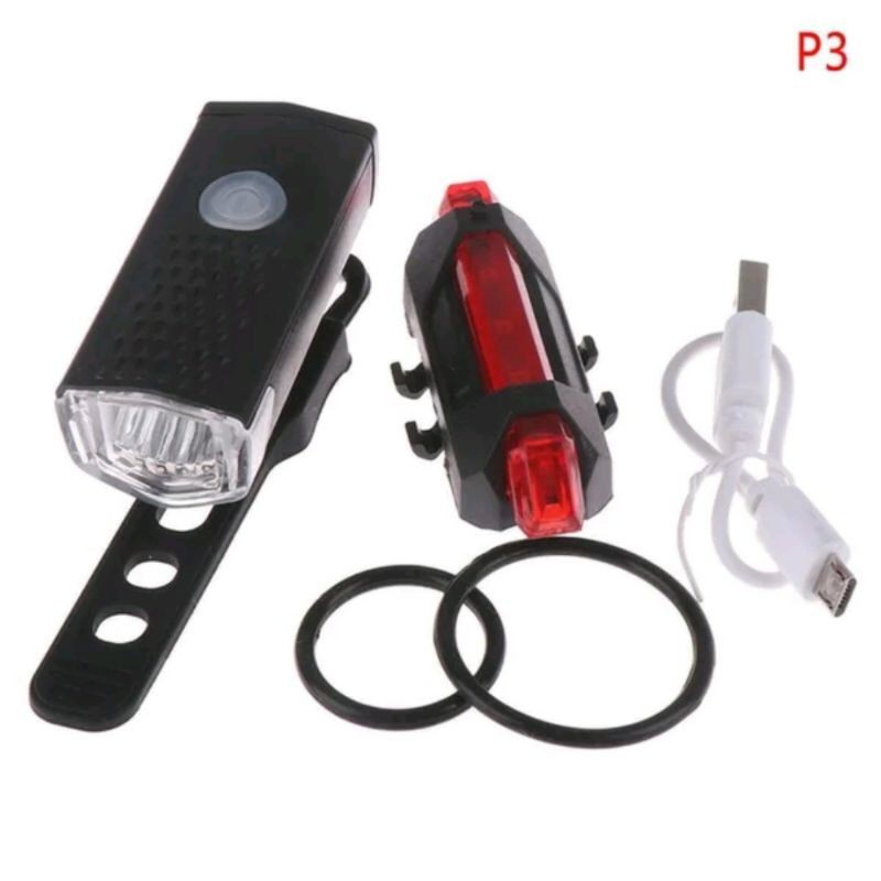 Paket Lampu Sepeda Depan Belakang LED rechargeable USB Berkualitas