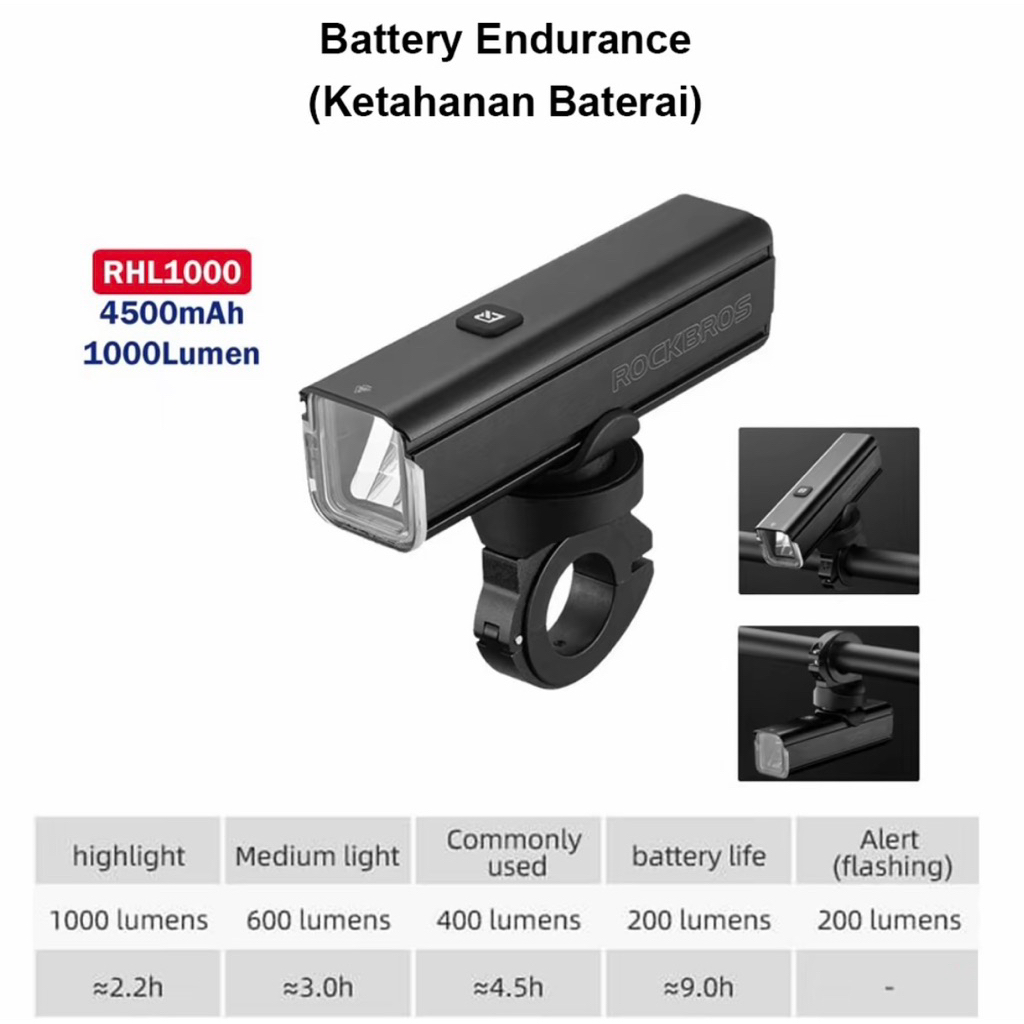 Lampu Depan Sepeda ROCKBROS RHL-1000 Lumen Super Terang Barfly Depan Bicycle Front Light