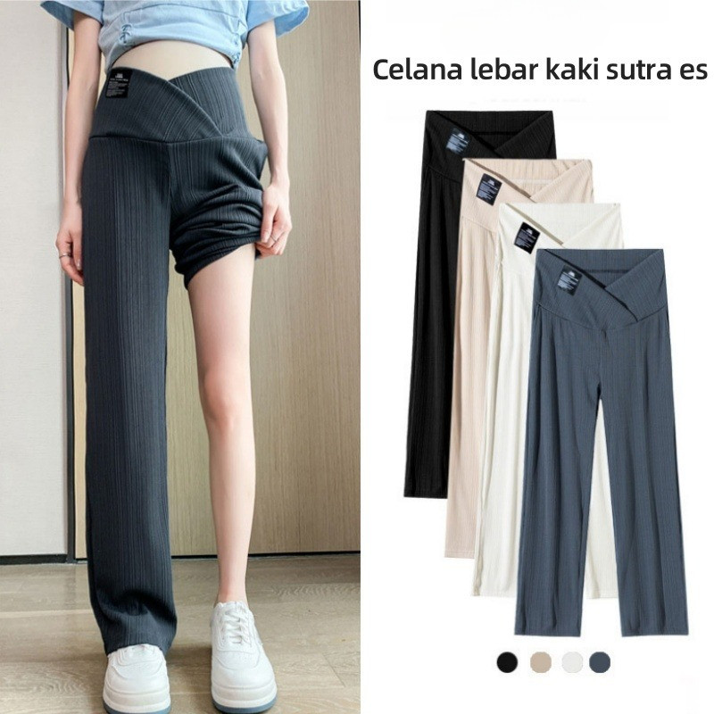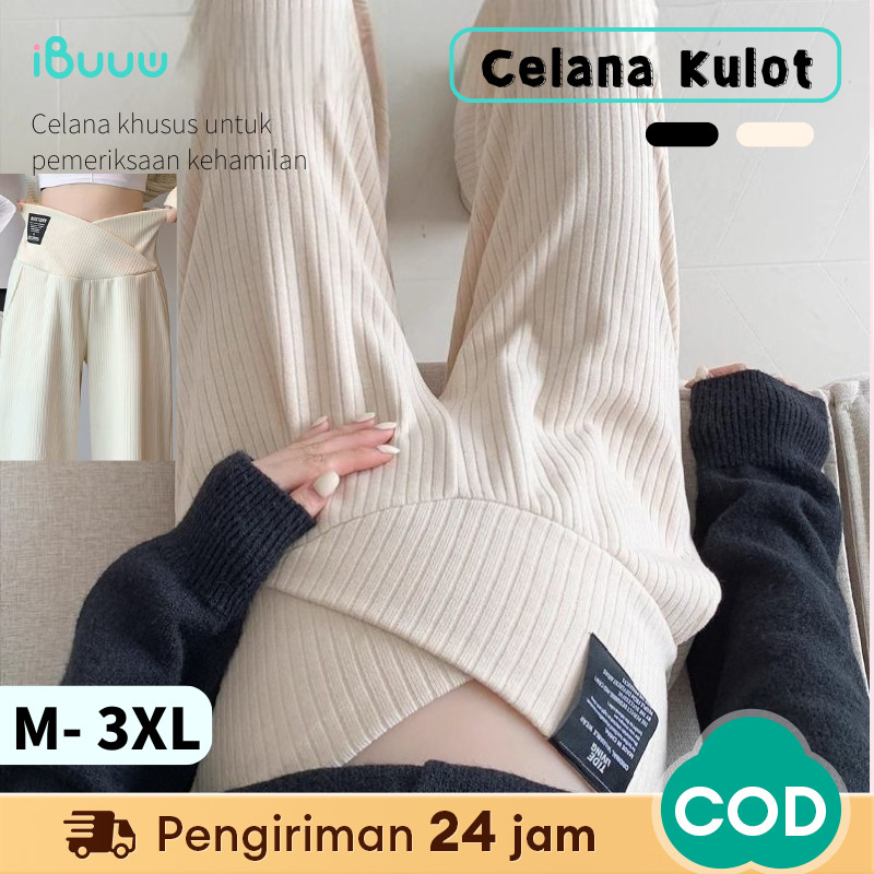 Maternity Bottoms Kasual Baju Hamil Celana Lebar Celana Kulot Jumbo Hamil Wanita Pinggang Rendah Knit Premium 7152