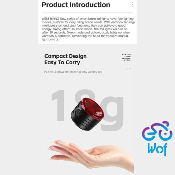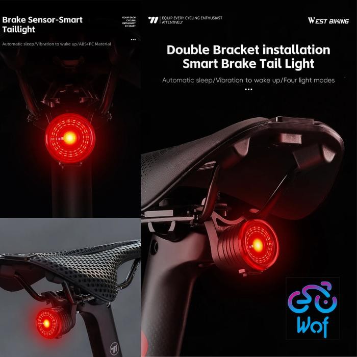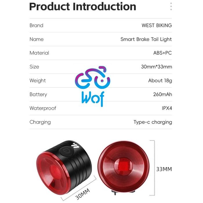 WEST BIKING 449 YP0701449 Lampu Belakang Sepeda Smart Sensor Rem USB Type C Tail Light Intelligent Sensing Brake TailLig