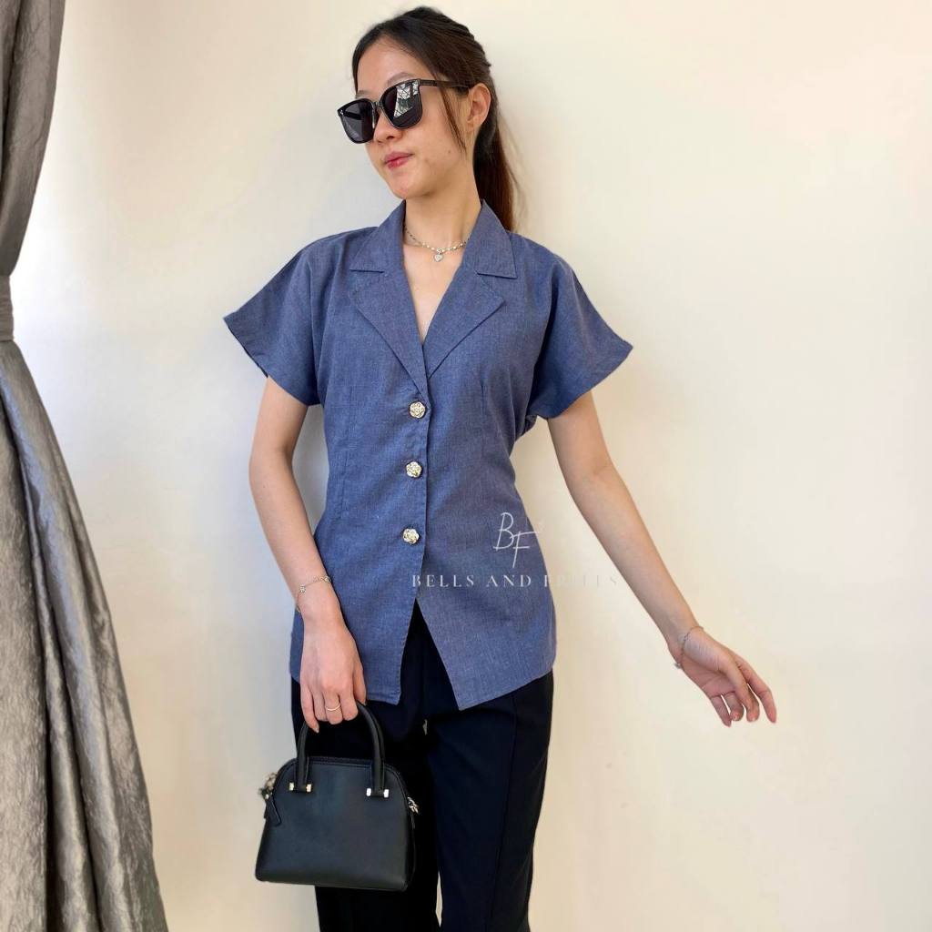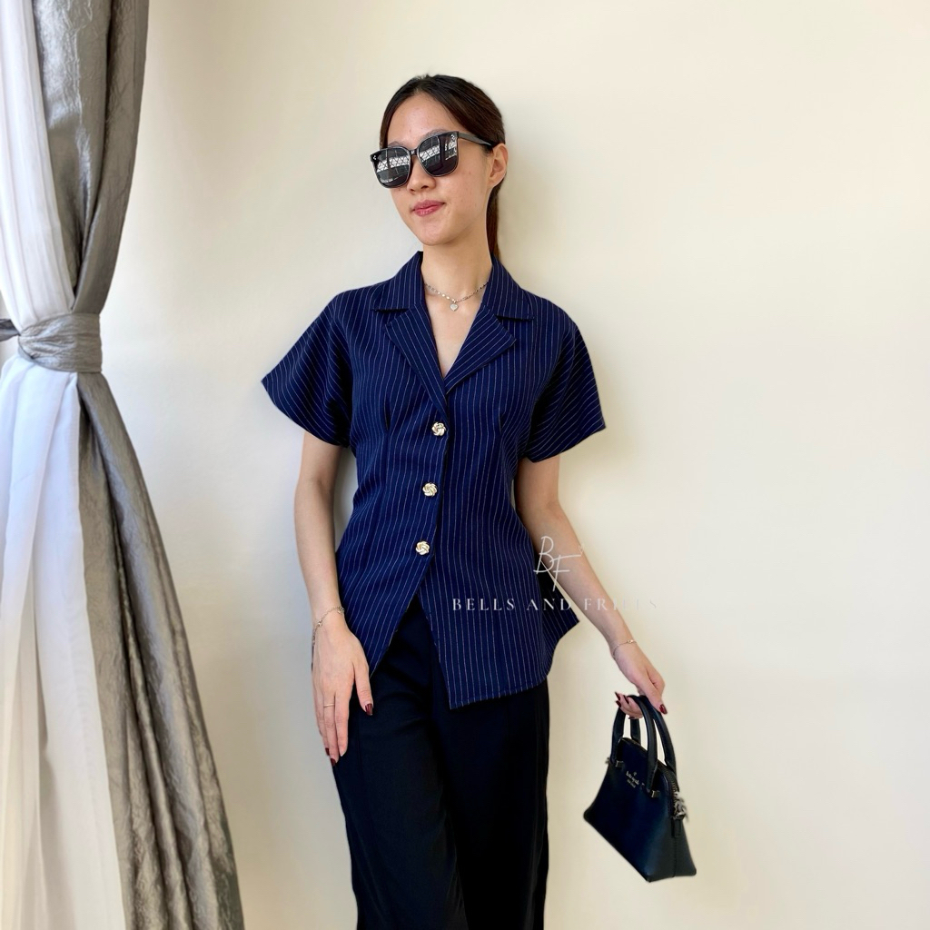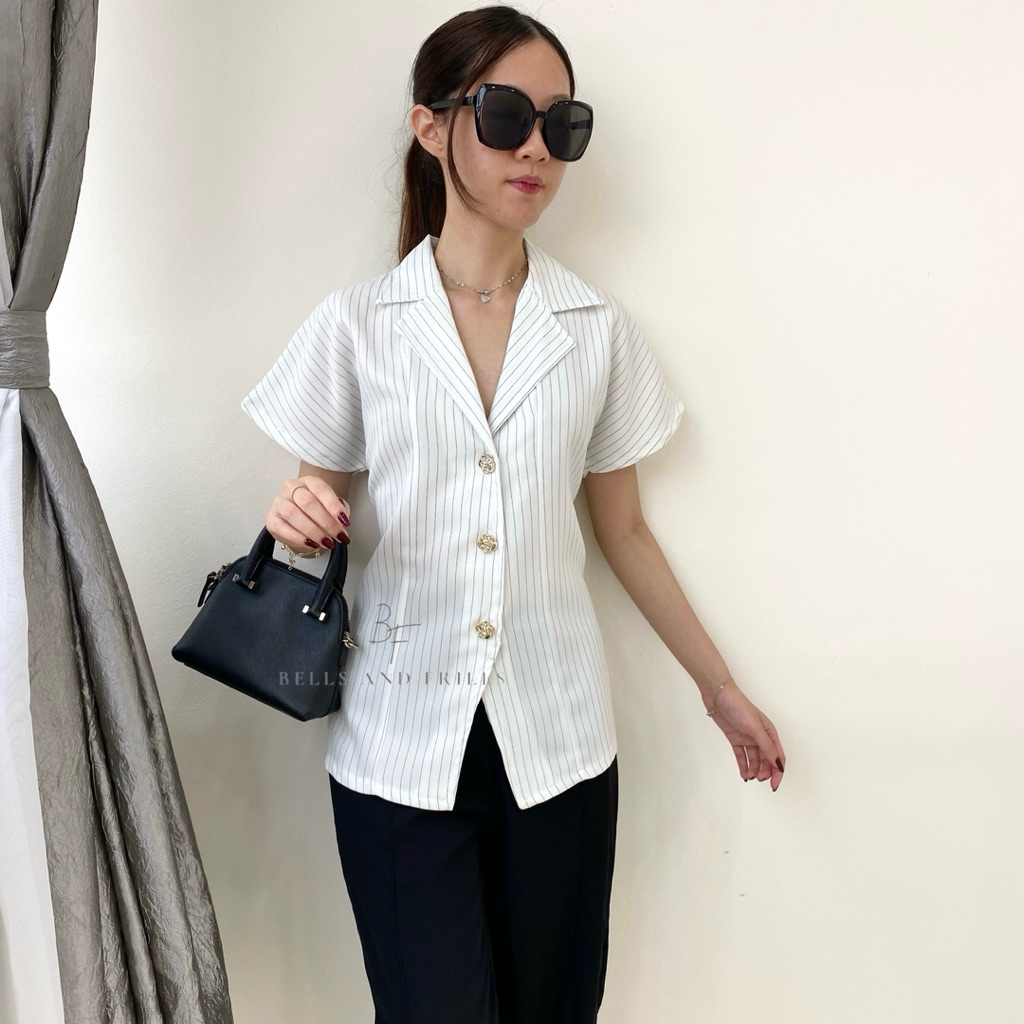 JULEN Vest Blouse Kemeja Fitted Shirt Fitted Vest Atasan Wanita Korean Sleeveless Rompi Stripe Vest Top Kemeja Kerja Wan