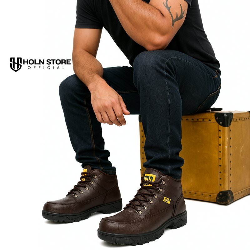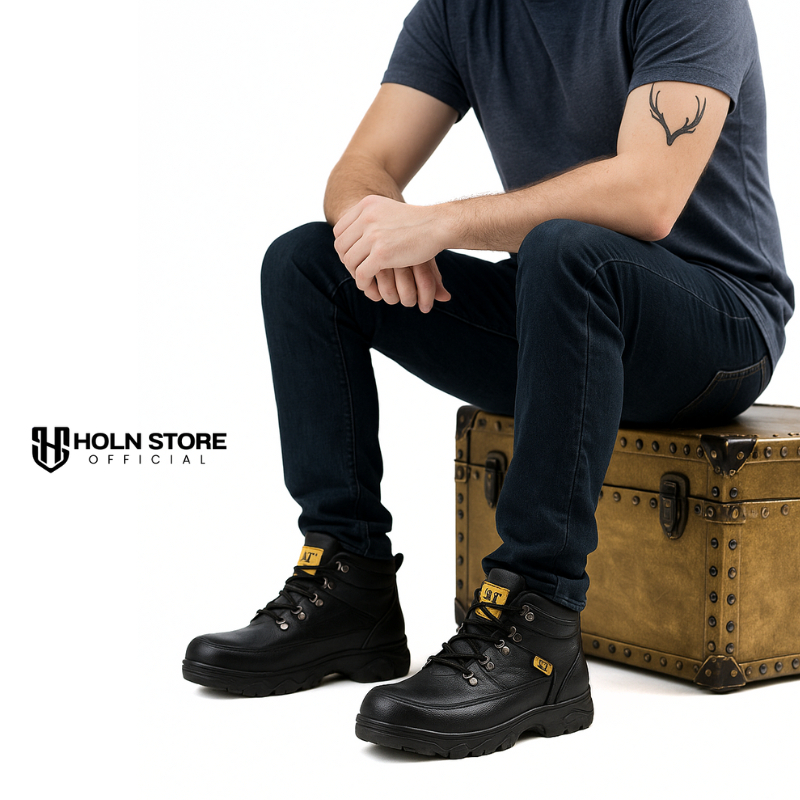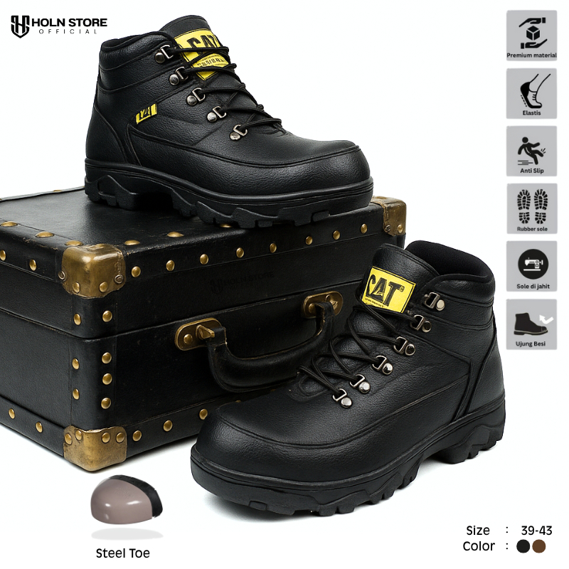 Sepatu Safety Pria Boots Septi Ujung Besi - Safety Boots Steel Toe - Sepatu Kerja Safety Industry Proyek Kitchen Safety