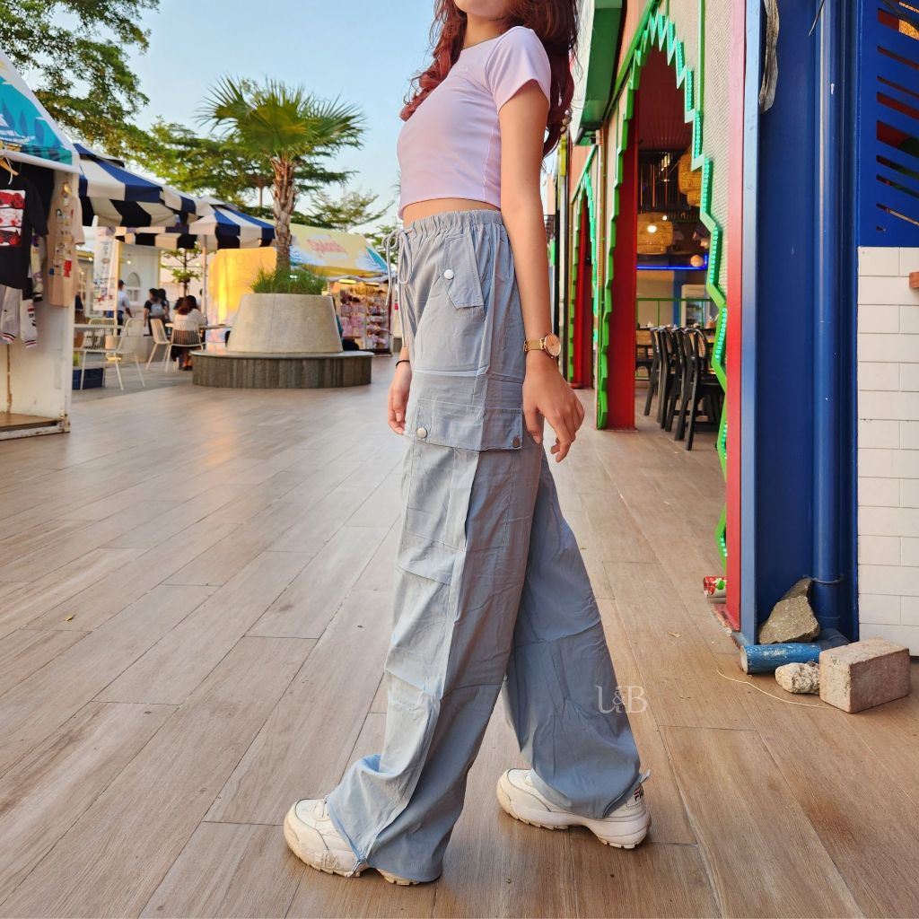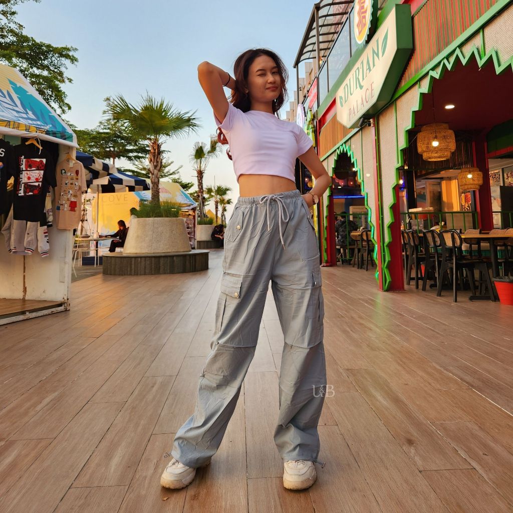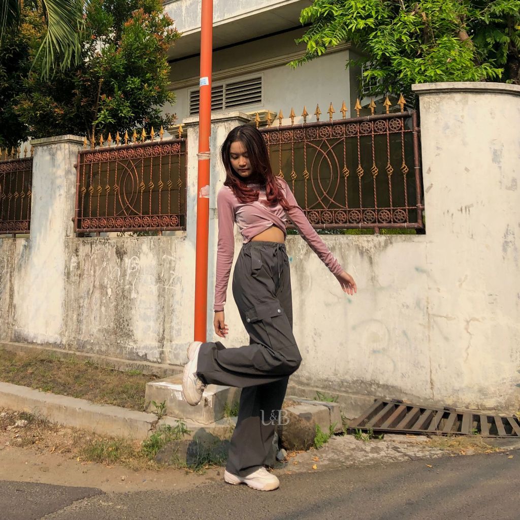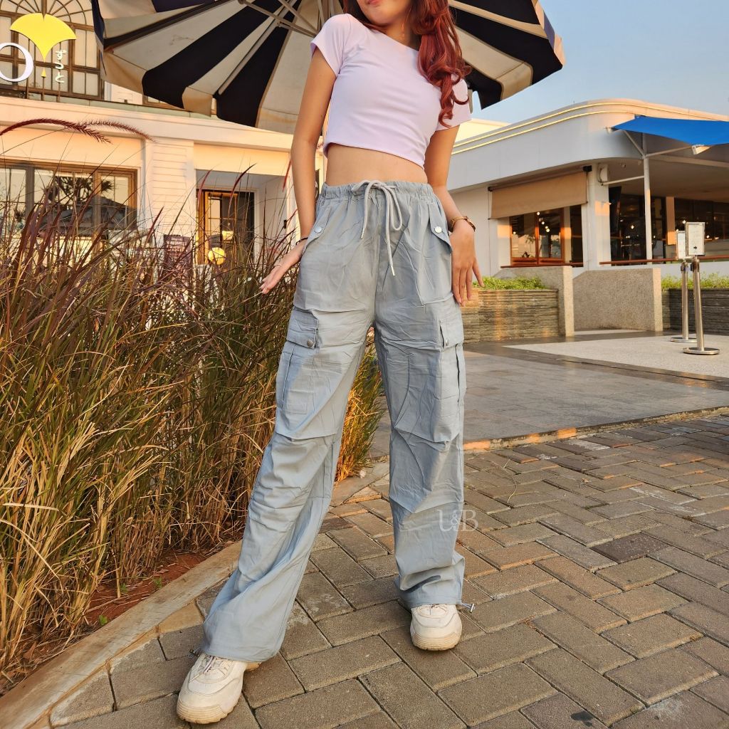 U&B OUTFIT - 2001 WOMEN'S CARGO PANTS | CELANA CARGO PANJANG WANITA HIGHWAIST PARASUT SUPER MELAR
