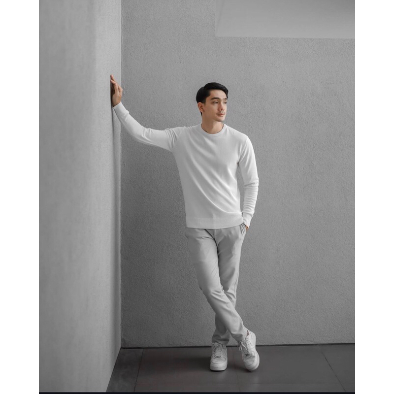 Sweater Pria Crewneck Putih Polos Lengan Panjang Sweatshirt Cowok Basic Oblong Unisex