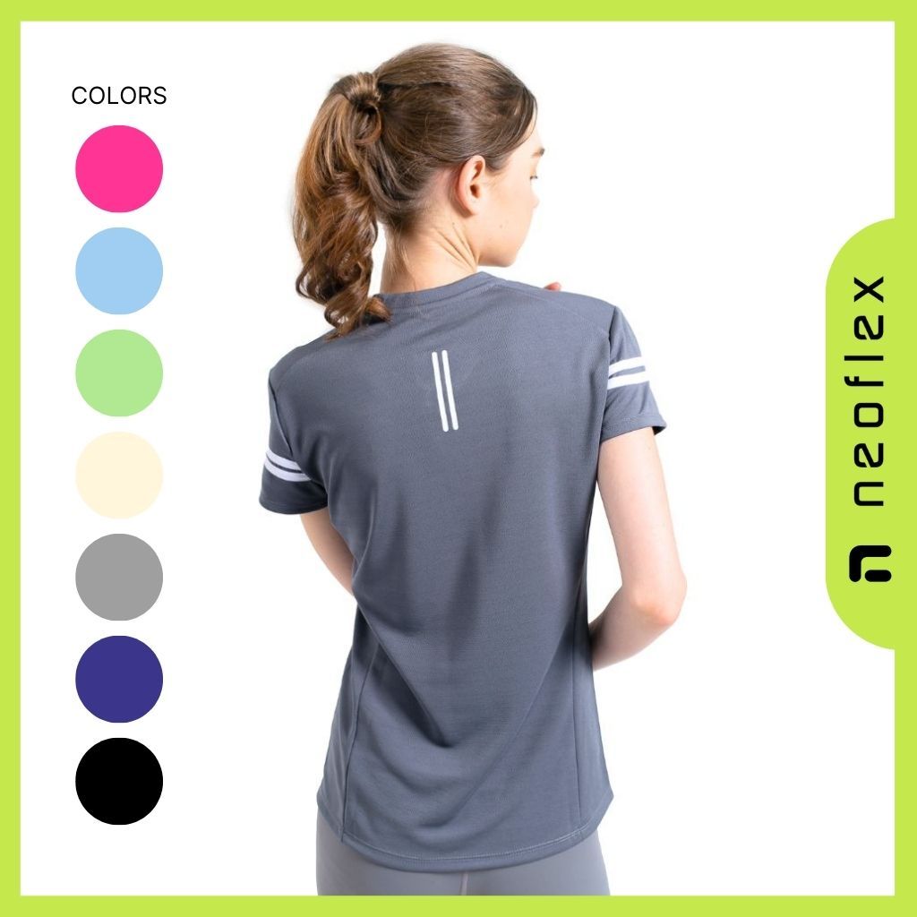 Baju Olahraga Wanita Lengan Pendek Dry Fit Kaos Running Lari Badminton Tennis Voli Gym Cewek Jersey Slim Fit - NEOFLEX