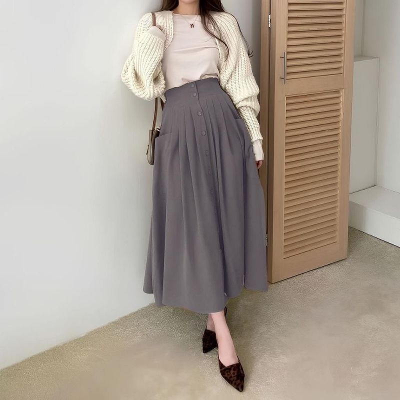 ROK NUNA SKIRT KOREAN STYLE BAHAN COTTON TWILL PREMIUM / ROK PANJANG WANITA MUAT BB STANDART DAN JUMBO