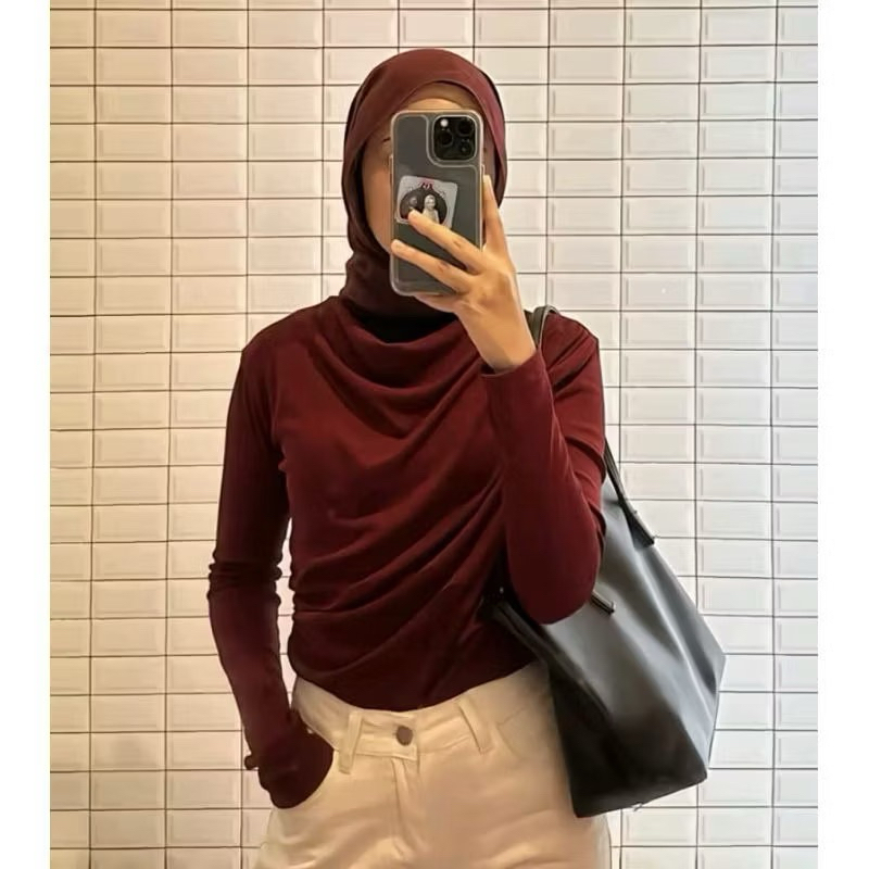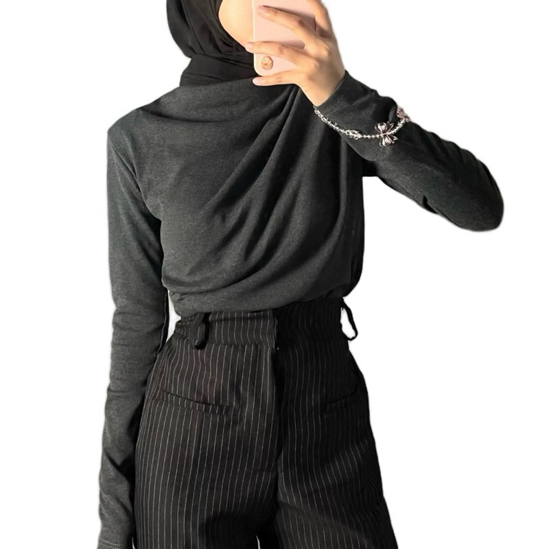 Atasan Wanita Knit Blouse Korean Style Lengan Panjang Basic Long Sleeve Premium