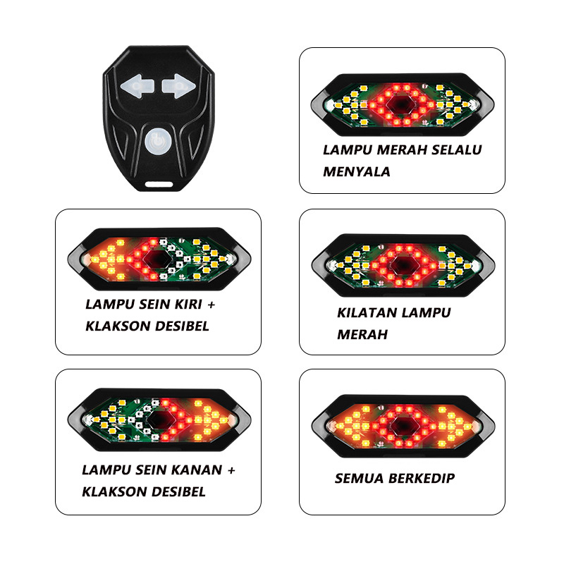 Lampu Rem Dan Sein Sepeda LED Rechargeable with wireless Remote Control
